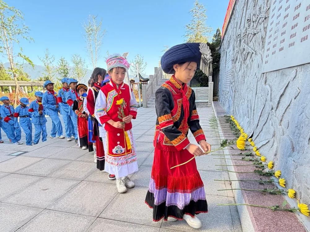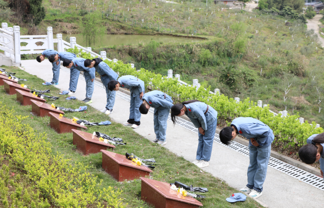 传承红色基因,弘扬革命精神。随后,研学队伍前往观音镇烈士陵园。松柏掩映下,孩子们整齐列队、默哀致敬,稚嫩的脸庞上写满了认真与敬仰。他们缓步绕行人民英雄纪念碑,依次敬献鲜花,在庄严肃穆的仪式中感悟今日幸福生活的来之不易。