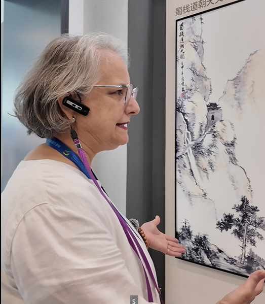 武汉长江外籍人员子女学校原副校长卡珊娣在明月峡景区“中国蜀道文化陈列馆”