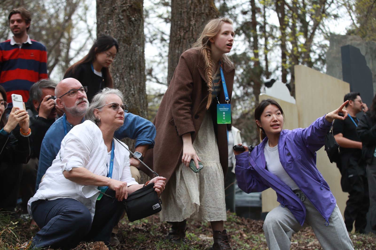 众人漫步林间,鸟鸣清脆、空气清冽,漫山紫荆含苞待放,远看如一幅淡紫色的画布徐徐铺展。人与自然和谐相融的惬意,写在每个人的脸上。