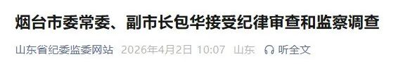 烟台市委常委、副市长包华涉嫌严重违纪违法,目前正接受山东省纪委监委纪律审查和监察调查。