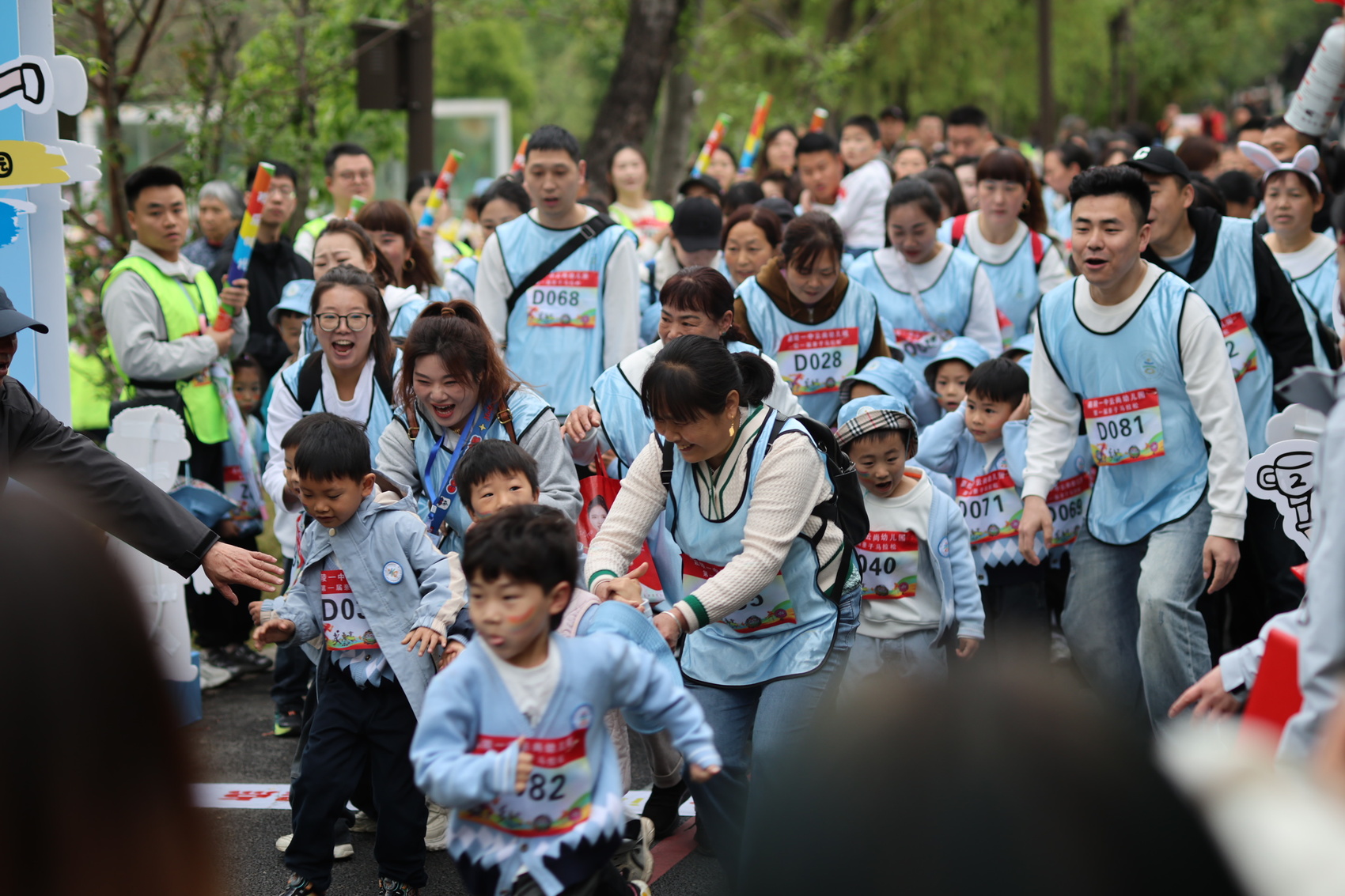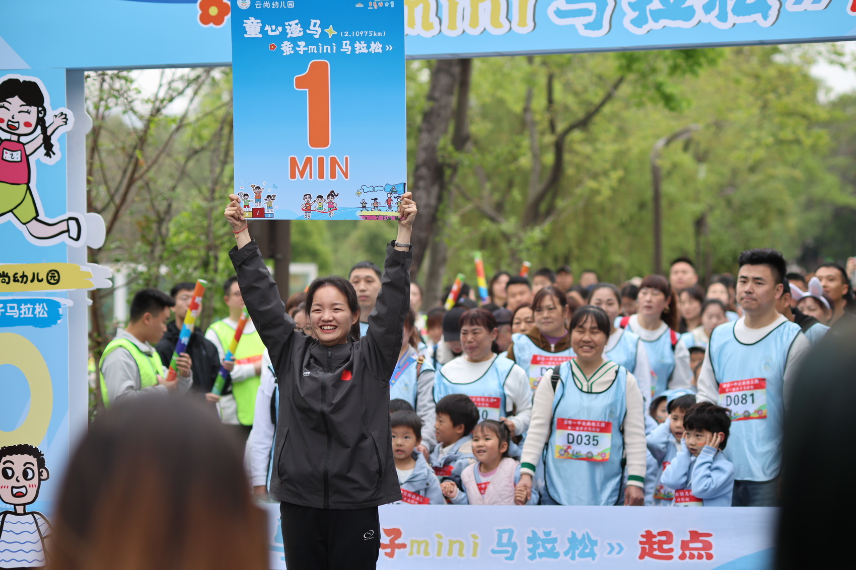 活动现场童趣盎然,孩子们亲手设计参赛凭证、搭建“童趣能量站”,用童真创意点亮赛道;活力热身操点燃全场热情,亲子家庭相伴出发,彩烟升腾、欢声不断,在春光中定格温暖的陪伴瞬间。