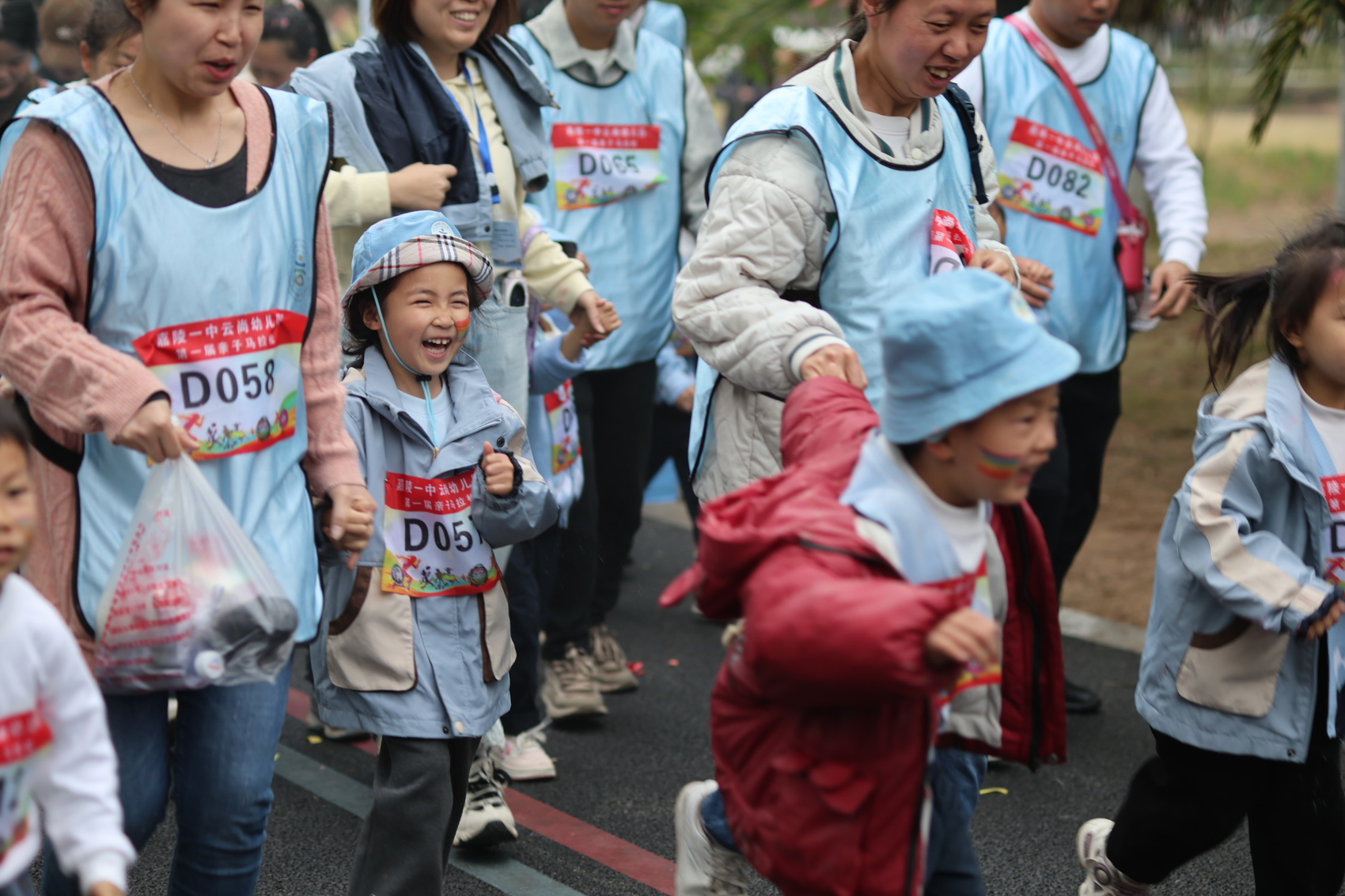 为守护幼儿安全与健康,活动配备赛道巡检、医疗救护、警力保障全程护航,各年级幼儿担任“关门兔”暖心引导收尾,确保每一位孩子安全完赛。专业裁判团队全程执裁,将正规赛事的安全规范融入学前活动,兼顾童趣与专业。
