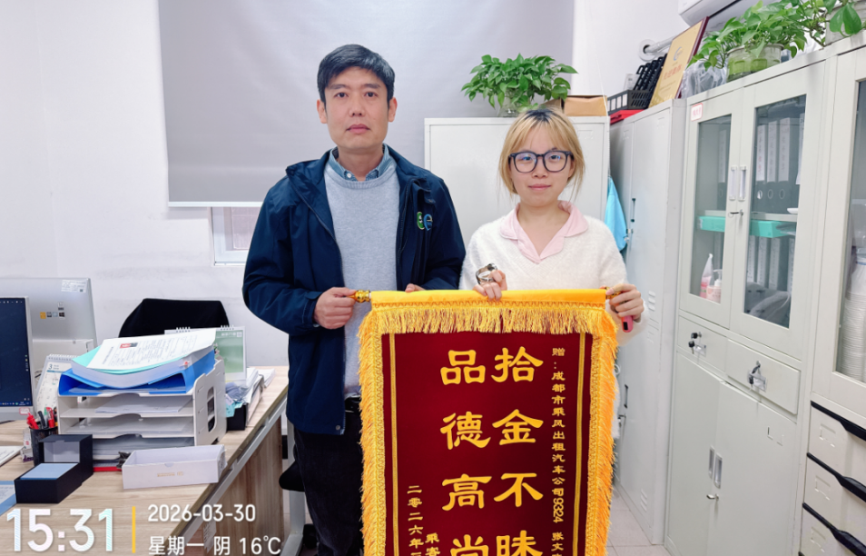 “拾金不昧,品德高尚”。让张文政没想到的是,失主还为他送上了一面锦旗。张文政接过锦旗,欣喜地说道,“这是我从业28年来第一次收到锦旗,在之前的工作中也捡到过很多手机、身份证、银行卡等物品,当时能联系上失主的也及时进行归还。未能联系上失主的将遗失物品交给公司进行联络归还。”