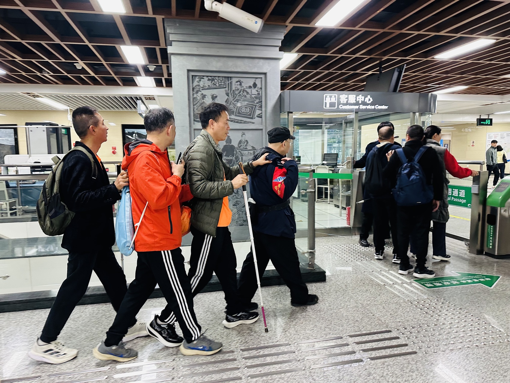 中医大·省医院站是成都地铁全线网日均换乘量最大的地铁站,日均无障碍服务超40次。该地铁站负责人闫婷婷介绍,多数乘客并未电话预约,更需要工作人员“眼观六路、耳听八方”。一双手伸出来,许多双手接过去——对视障乘客而言,放心出行的背后,是489座车站无数双手的提前等候。