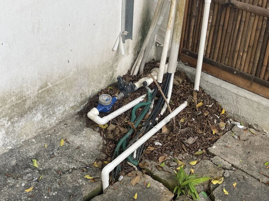 据现场观察,很多建筑的水管及其他线管混在一起,并随意埋进地下。