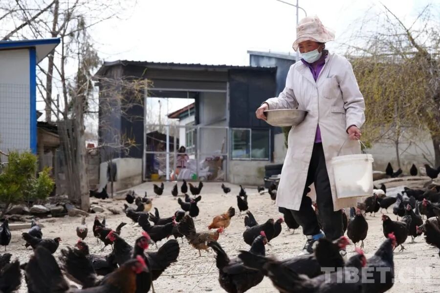 次仁罗旦喂养藏鸡