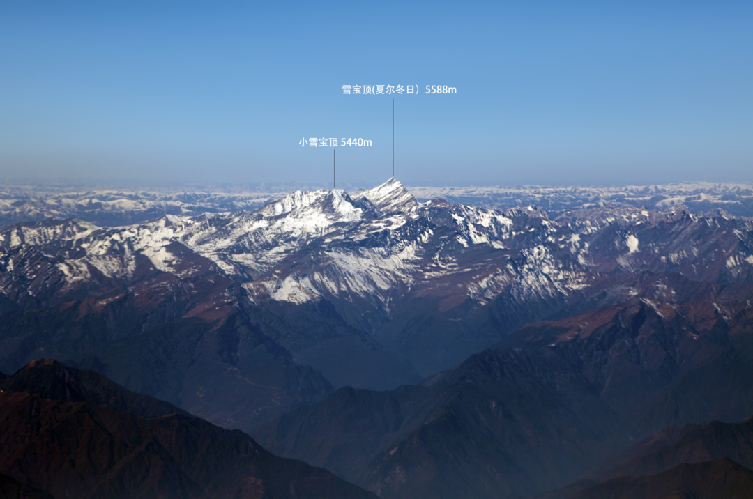 曾出版《甘孜州高海拔山峰图录》和《藏东南雪峰图录》的国内知名山峰研究者温钧浩,在看到这张照片后也感到非常兴奋。他通过地图软件模拟了拍摄视角,确信照片中两座明显的雪峰为海拔5588米的雪宝顶和海拔5440米的小雪宝顶。
