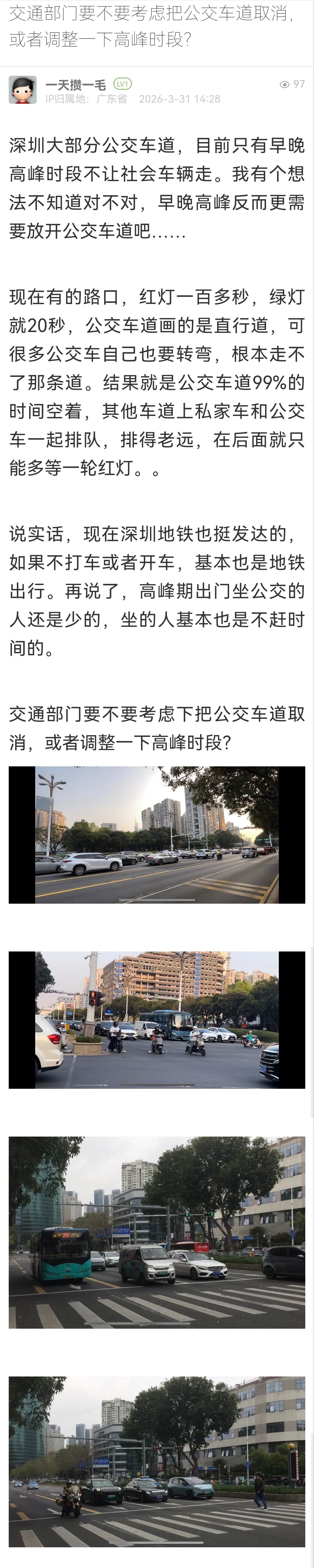 交通部门要不要考虑下把公交车道取消,或者调整一下高峰时段?