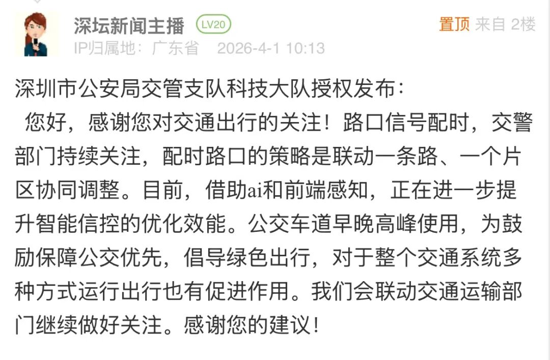 路口信号配时,交警部门持续关注,配时路口的策略是联动一条路、一个片区协同调整。目前,借助ai和前端感知,正在进一步提升智能信控的优化效能。公交车道早晚高峰使用,为鼓励保障公交优先,倡导绿色出行,对于整个交通系统多种方式运行出行也有促进作用。我们会联动交通运输部门继续做好关注。