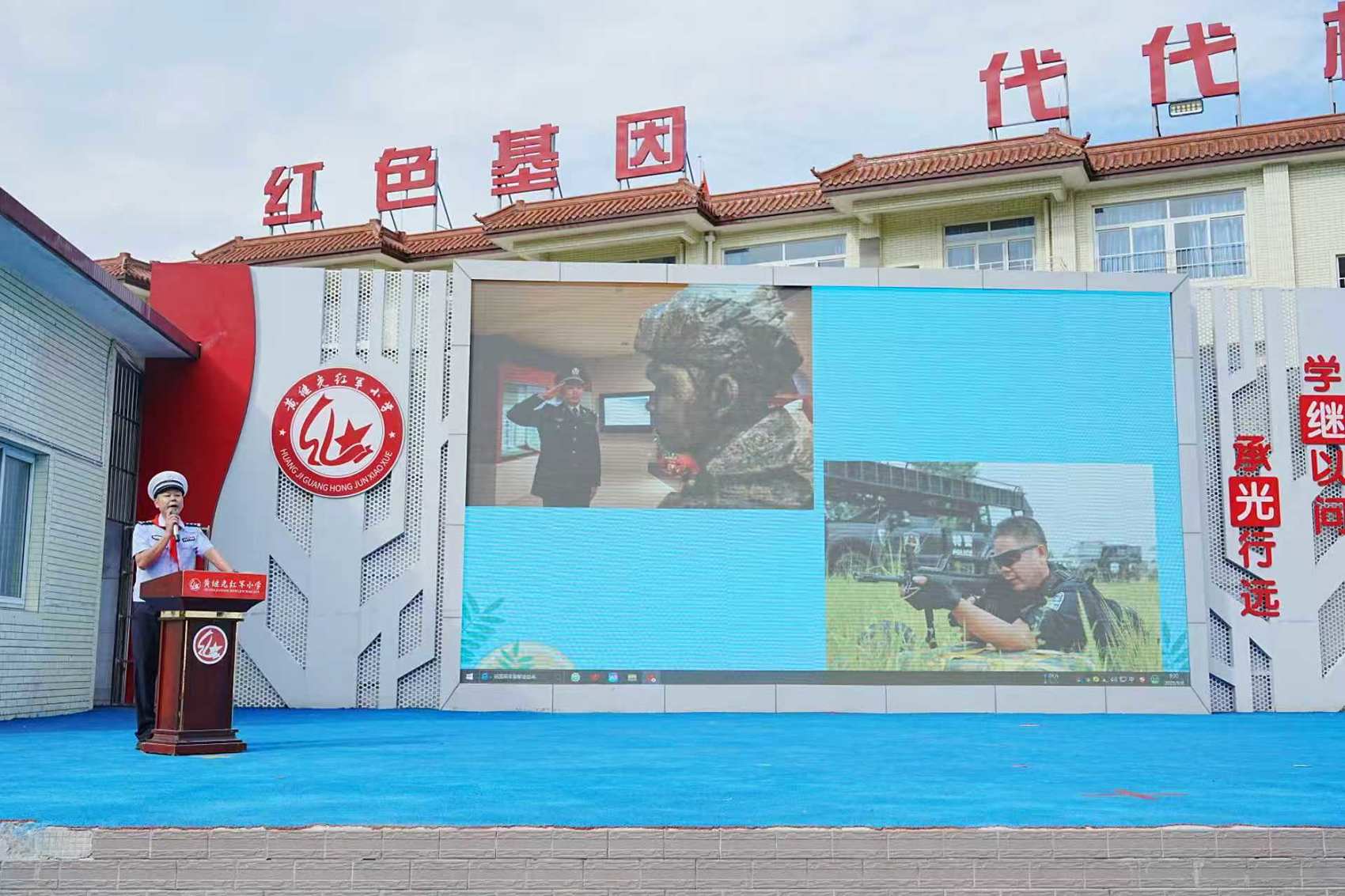 黄忠凯在黄继光红军小学讲红色故事。受访者供图