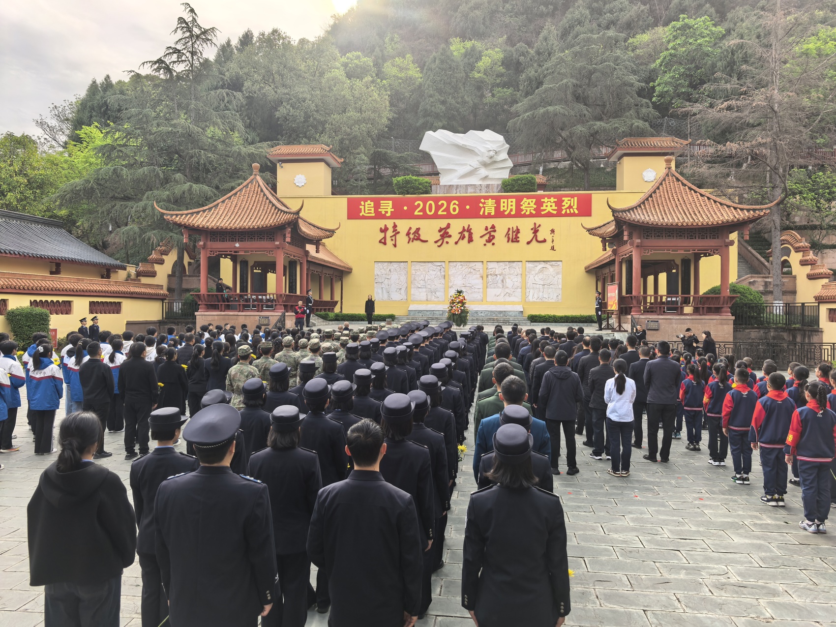 在黄继光纪念馆,当地干部群众举行缅怀活动。罗园 摄