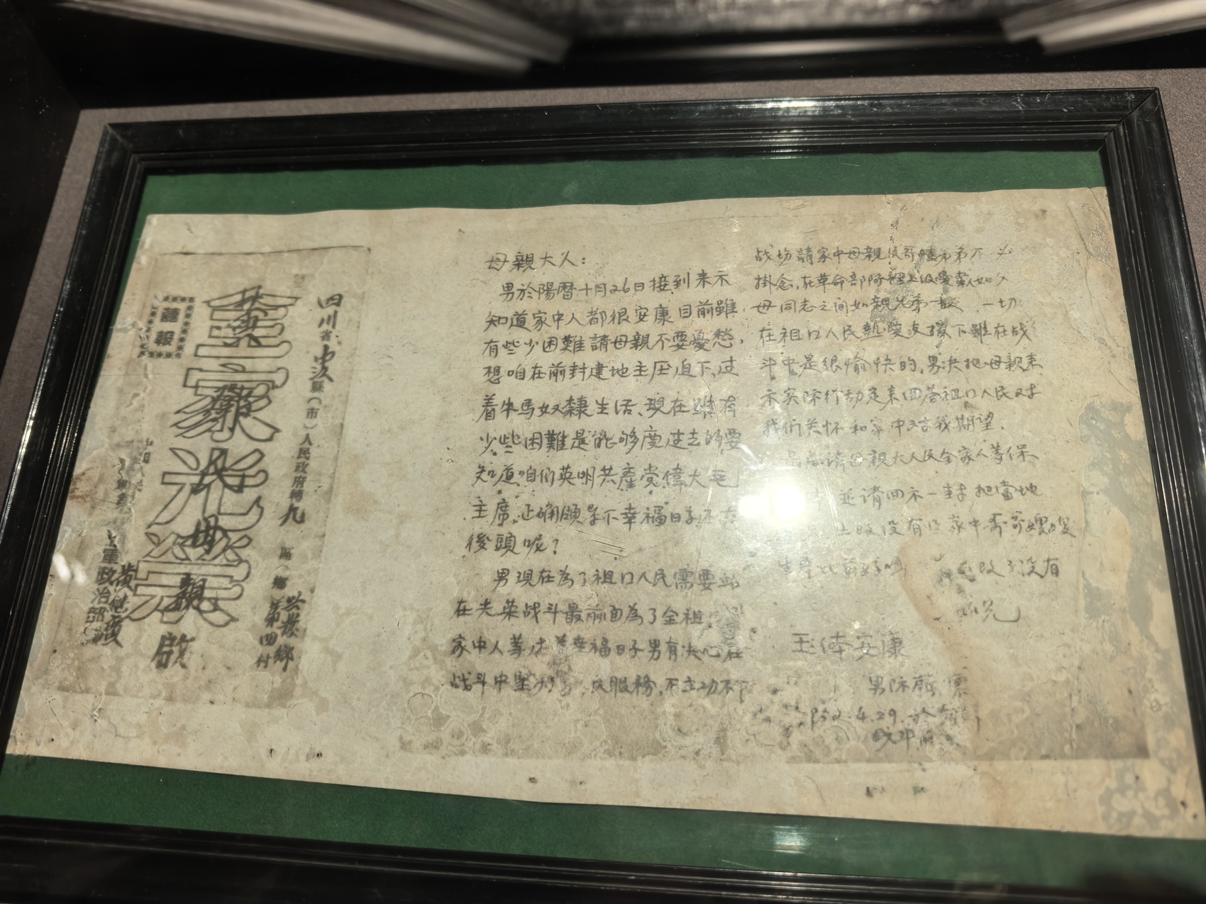 黄继光烈士写给母亲的最后一封家书,立下了“不立功,不下战场”的铮铮誓言。罗园 摄