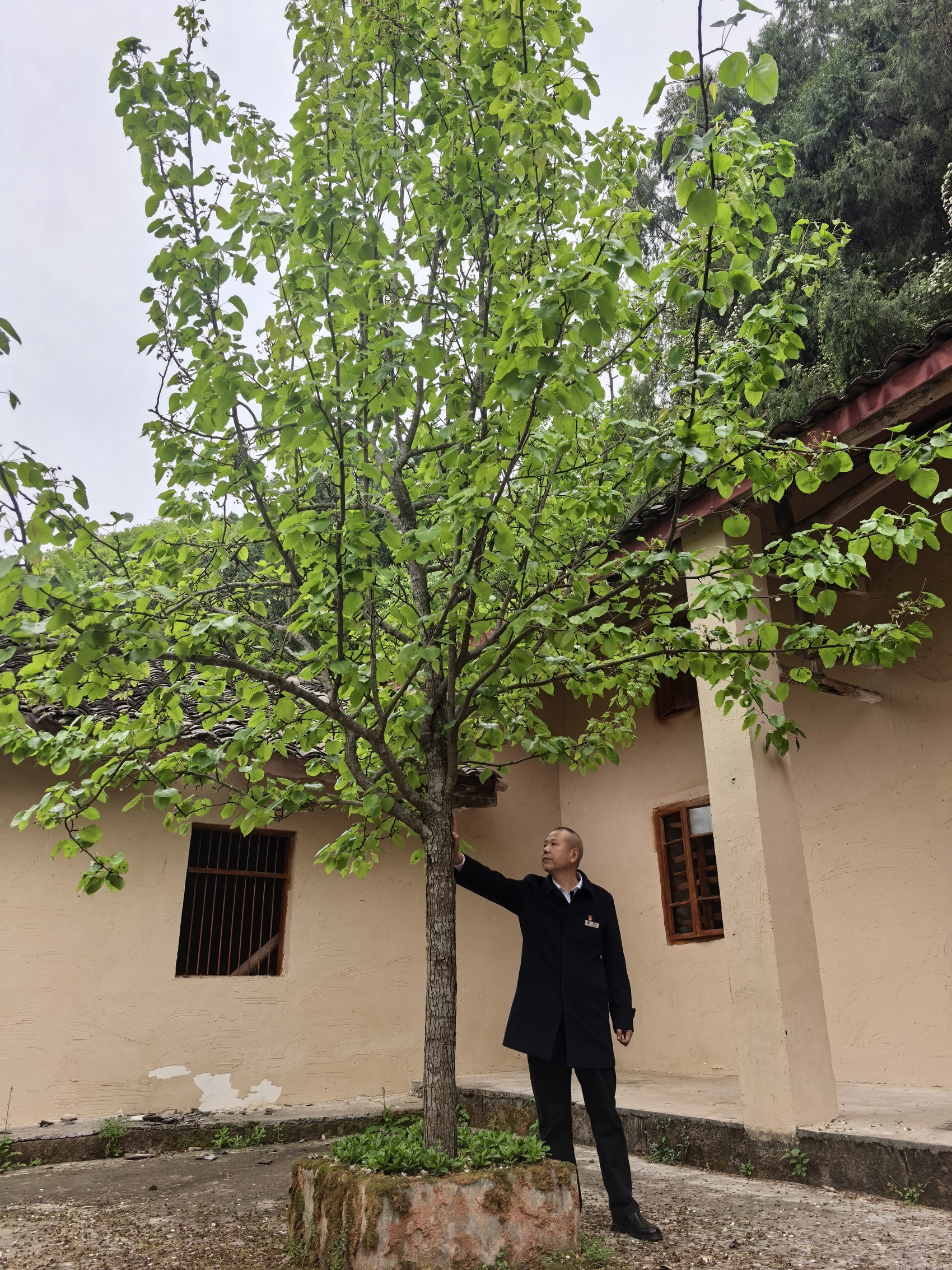 2008年,那棵陪伴了黄家几十年的老梨树渐渐枯萎,最终轰然倒下。“当时心里很难过,但我清楚,梨树倒了,英雄精神不会倒,黄家家规永远不会变。”黄拥军回忆,他当即在村口挖了一棵梨树苗,种在老梨树的位置,让新梨树带着老梨树的根、带着英雄的魂继续生长。如今这棵新梨树,笔直向上,枝繁叶茂,树干直径已逾十厘米,年年开花结果,生生不息。