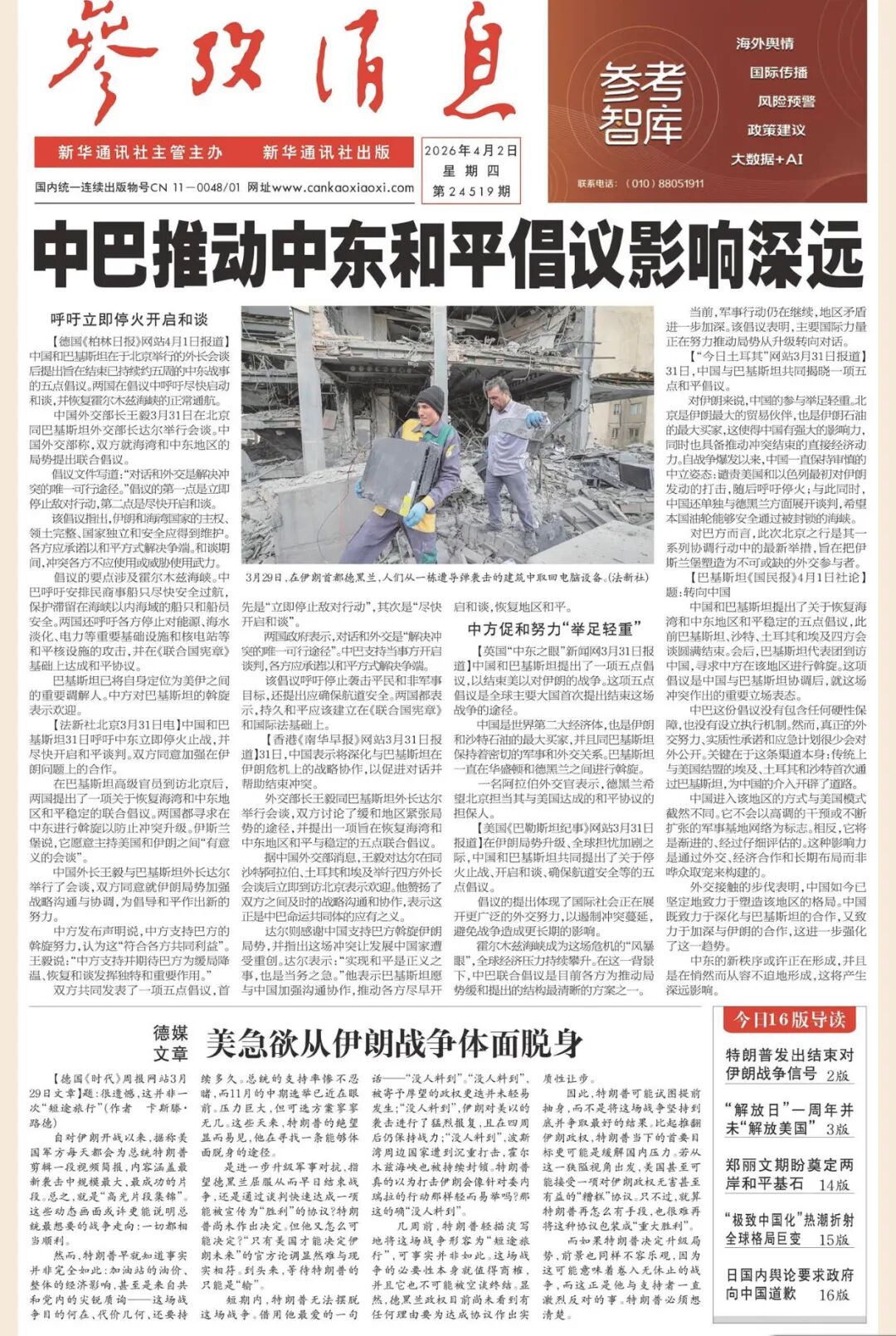 今日出版的《参考消息》数字报,五大看点不容错过。