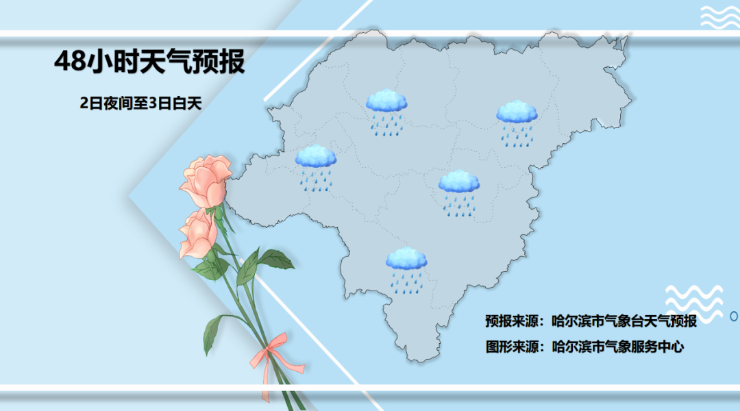 2日夜间至3日白天:全市多云转小到中雨;东北风转西北风2~4级;最低气温-5~-2℃,最高气温延寿、尚志、五常12~15℃,其他区域8~10℃。