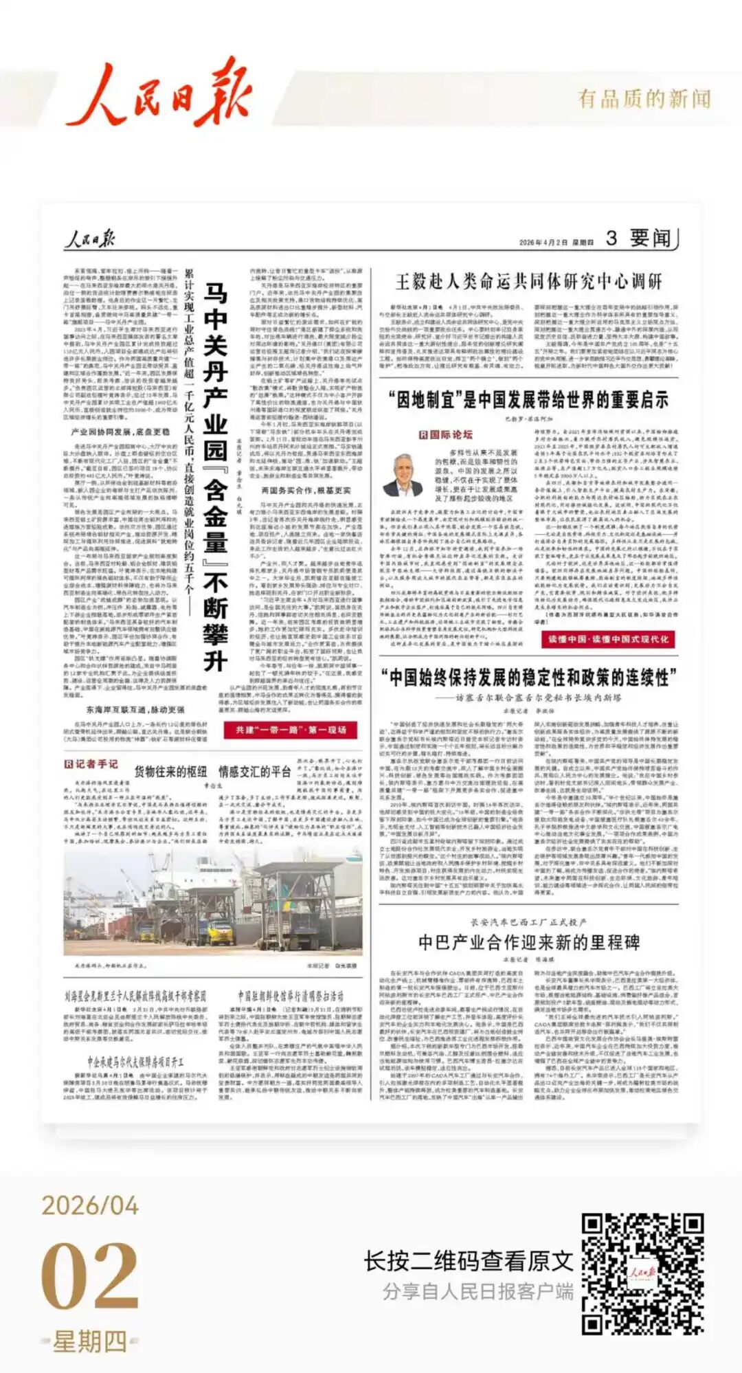 文章来源:2026年4月2日人民日报3版要闻
