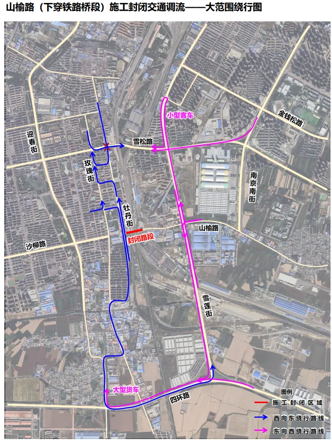 施工期间,将封闭山榆路的雪莲街至牡丹街段铁路下穿桥机动车交通,仅保留行人、非机动车通行,山榆路雪莲街西口仅允许沿街单位及居民通行。