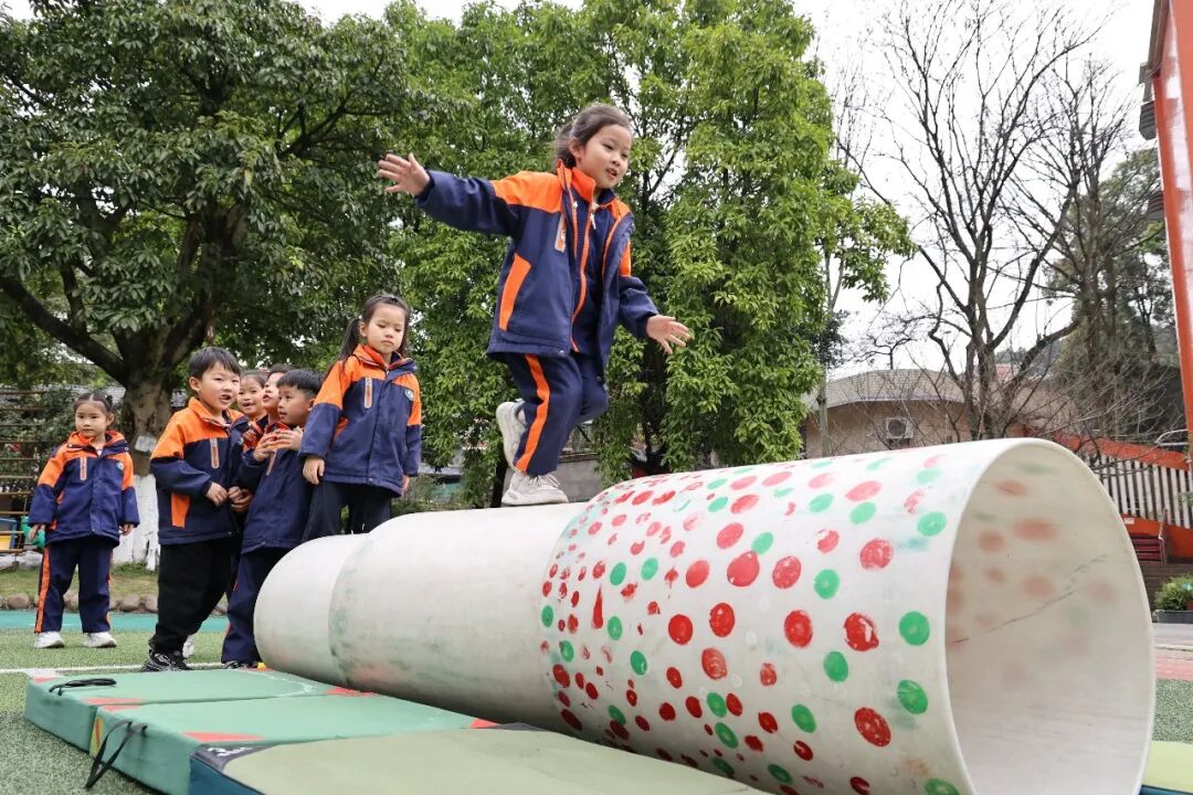 2026年3月5日,重庆市沙坪坝区曙光幼儿园,大班的孩子们正在园内运动。该园88名大班幼儿已全部享受保教费减免福利,切实为不少家庭减轻了经济负担。 孙凯芳摄