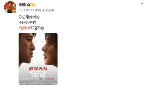 3月31日,蒋欣转发孙俪微博为其新剧《危险关系》做宣传:又有好戏看了!