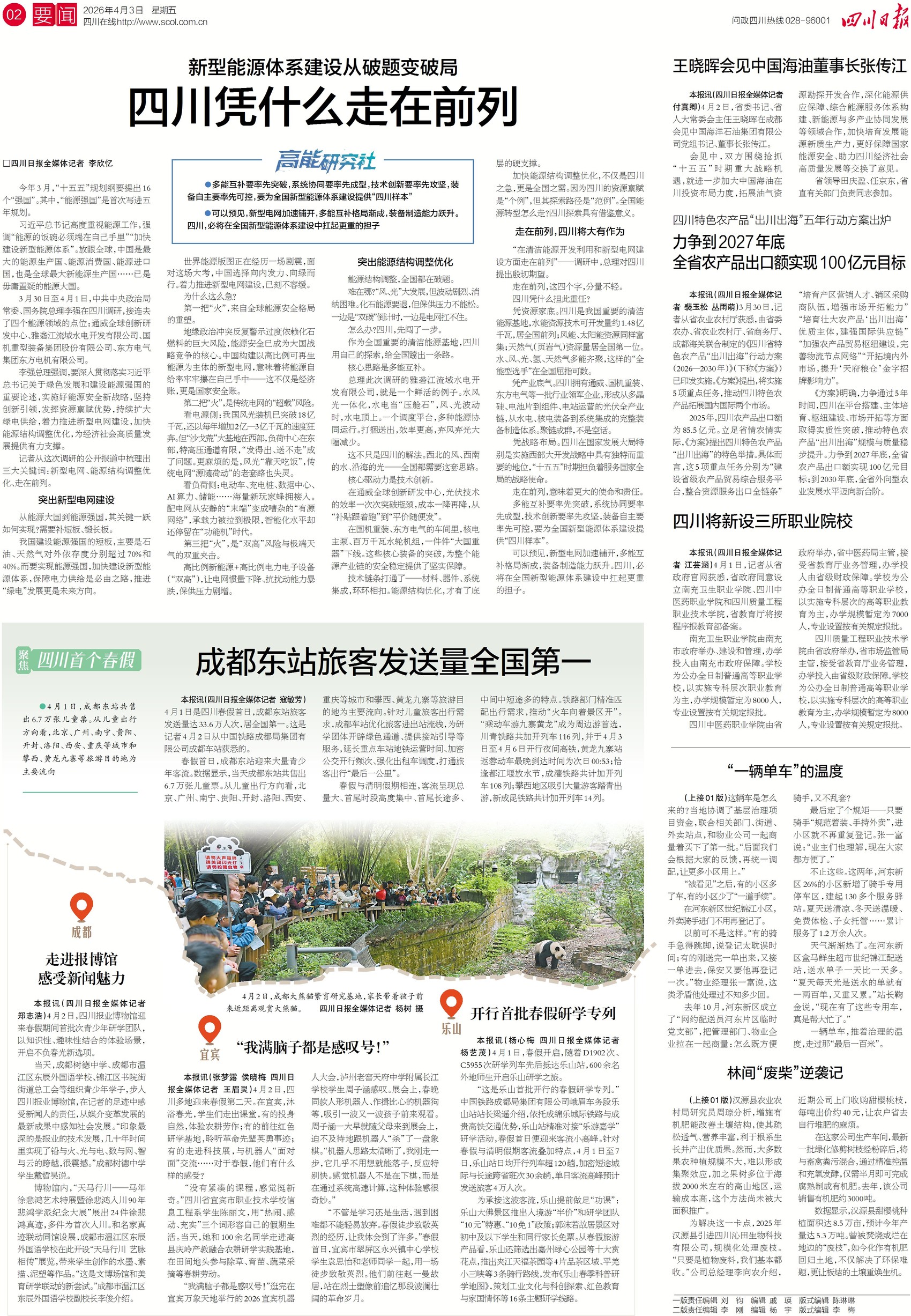 成都东站旅客发送量达33.6万人次,居全国第一。这不是春运或者国庆,而是4月1日四川首个春假的第一天,各地中小学生纷纷出动,奔赴各地的春天。他们有的去体验农耕劳作;有的与机器人面对面交流;还有的在红色基地聆听先辈英勇事迹。关注今日二版,解锁全省各地学生的春假花式玩法。
