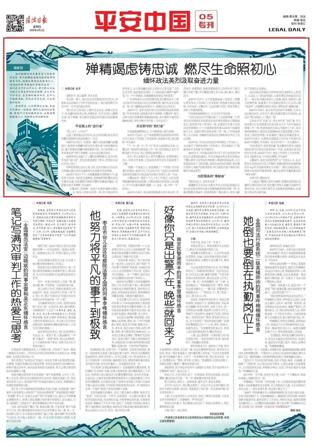 他们在自己的岗位上维护社会安定、保障人民安宁,在关键时刻舍身忘我、冲锋在前,在平凡岗位上默默无闻、坚守奉献,成为新时代政法铁军最闪亮的精神坐标。
