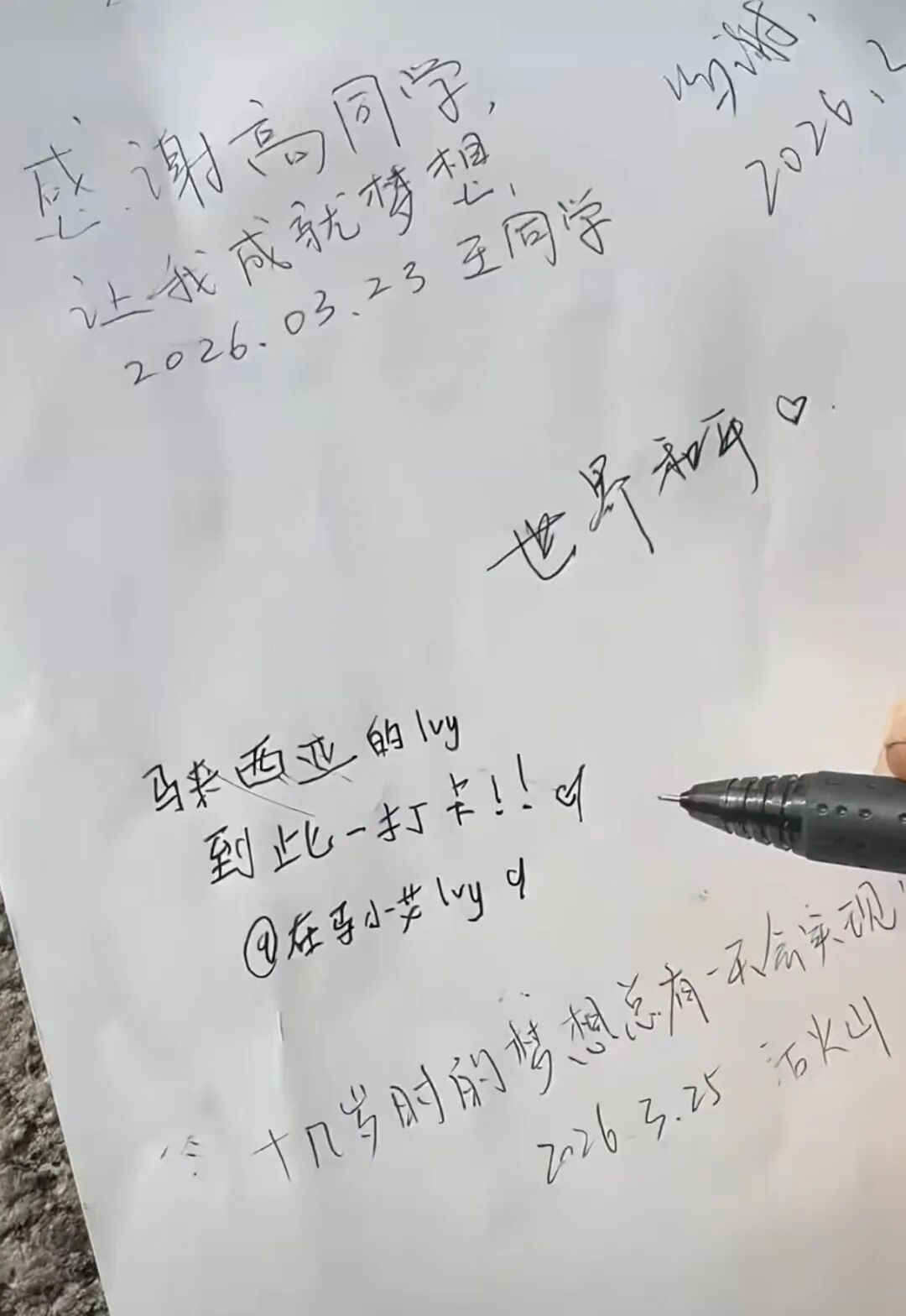 更让她惊喜的是,每本课本里的留言都各不相同。“后来我刷到其他网友的打卡视频,居然在里面看到了自己写的留言,那种感觉特别奇妙,也特别好玩。”她的视频发布后,也被很多马来西亚华人看到,大家纷纷感慨:“这是属于全球华人的浪漫”。
