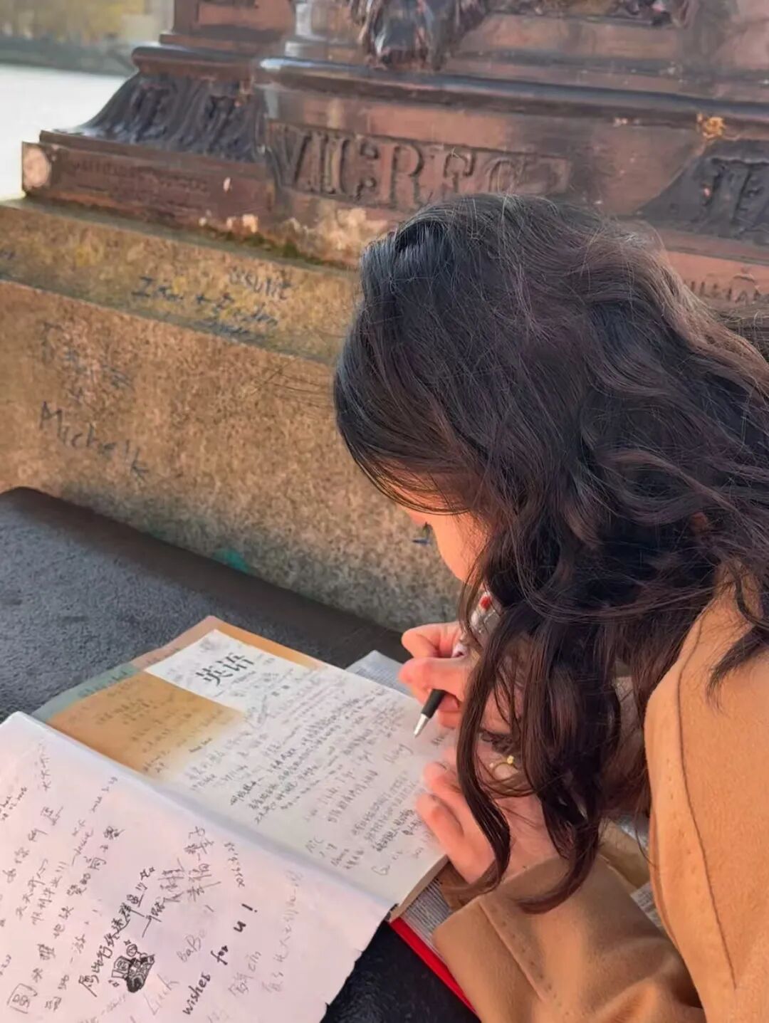 在拍照打卡后,她在书页写下拉丁语短句“Carpe Diem”,意为活在当下。“我知道自己可能会离开伦敦,所以想珍惜在伦敦的每一刻。我也把这份心情分享给陌生的相遇者。”