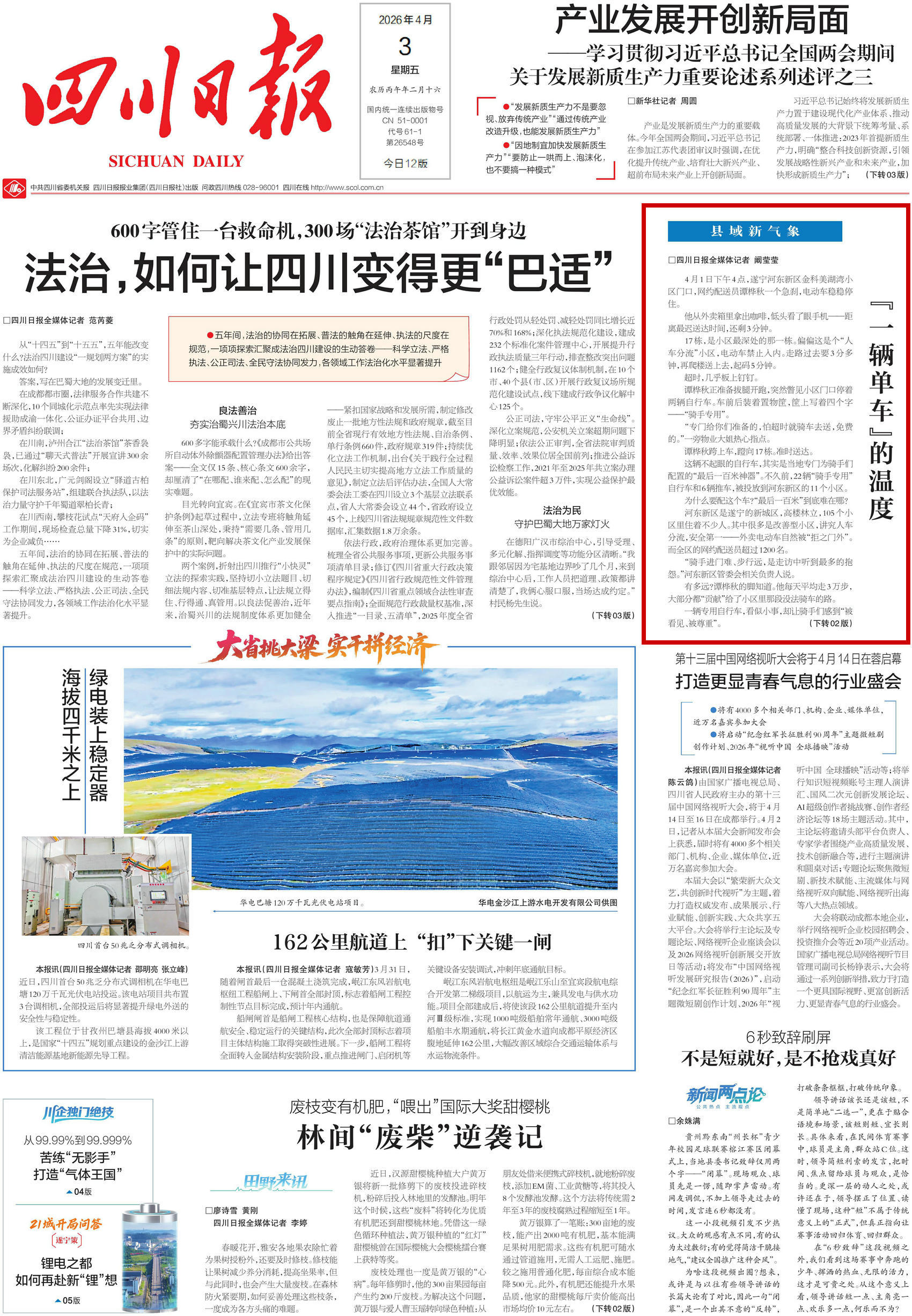 《四川日报》2026年4月3日 头版转02版
