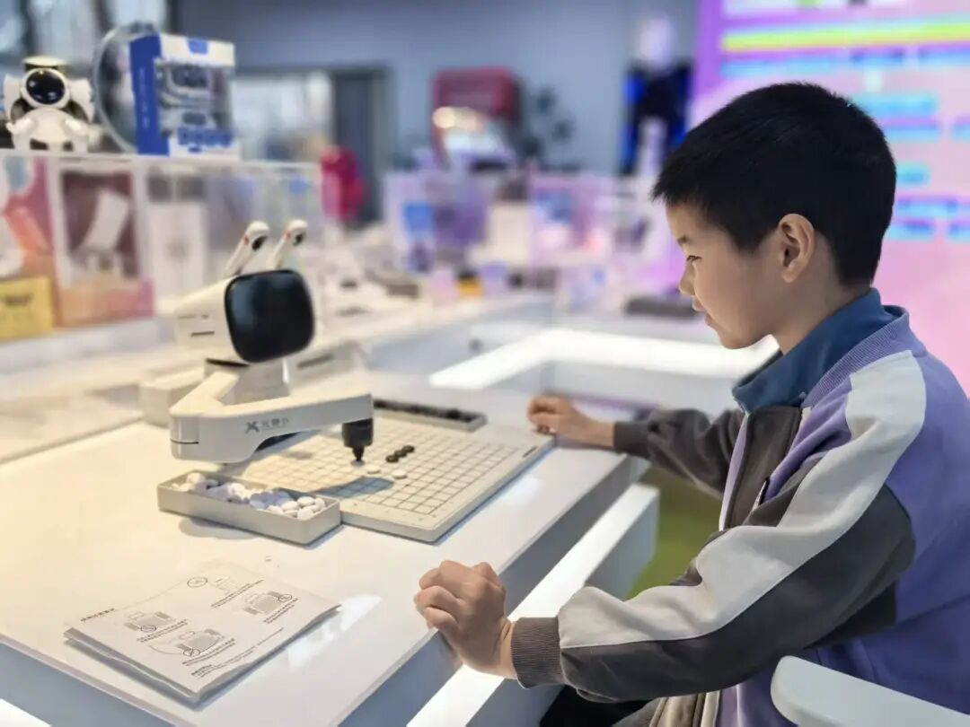 孩子们围着AI机器人对弈