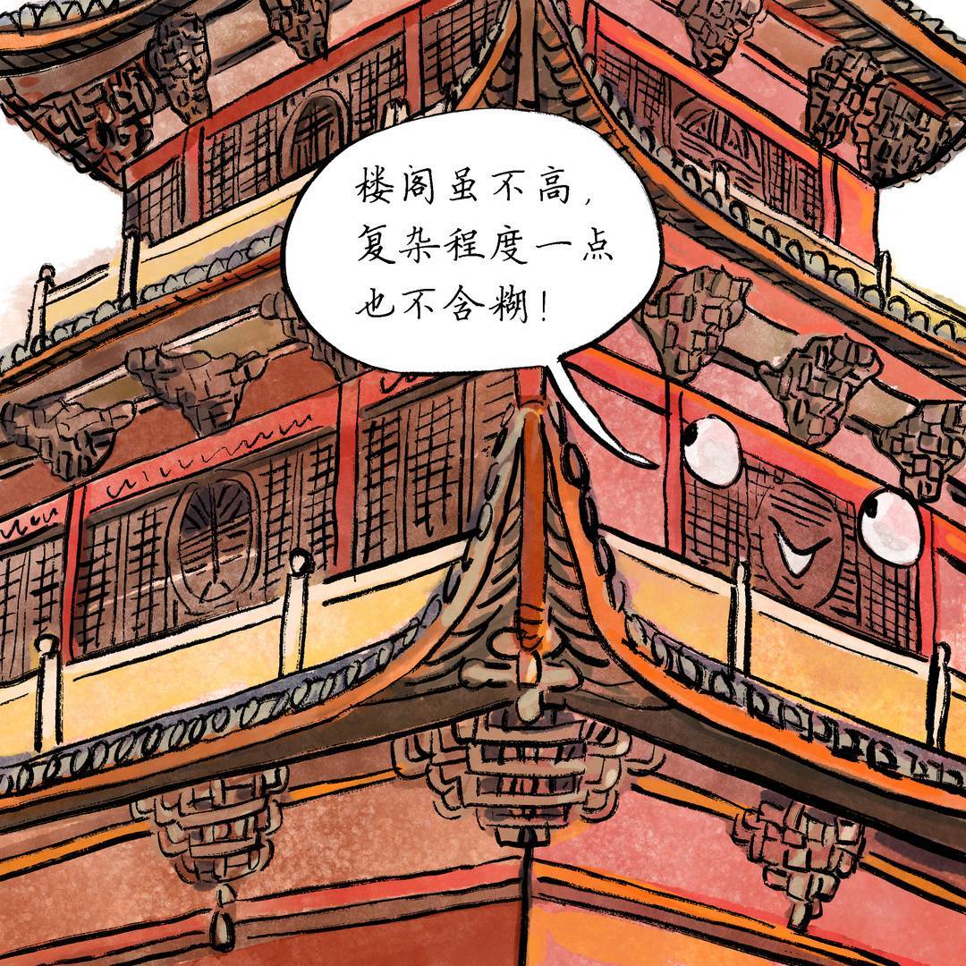 魁星楼高大雄伟,整个建筑均采用木质构建。走进魁星楼,一眼便可看到四根粗壮、黝黑的木柱,专业来说这个叫抬梁式梁架,前后乳木伏搭牵用四柱,每层檐下装饰有斗拱,除四角的转角斗拱外,其间还饰有补间铺座斗拱,斗拱工艺精巧,结构严谨。这些具有川东北浓厚的古建筑特色,同时对研究清代民间木质阁式园林景观提供了宝贵的实物资料。