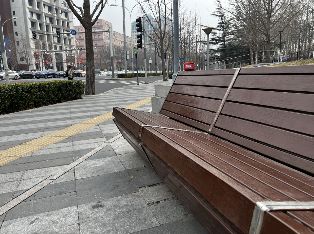 三虎桥北路,路侧座椅的椅面进深达114厘米。