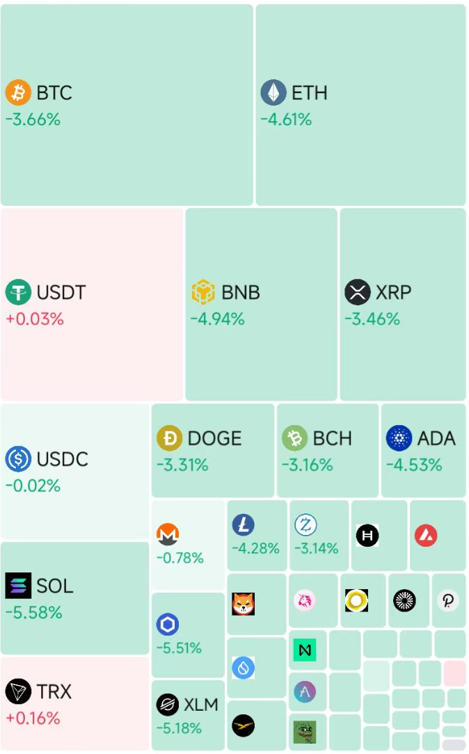 加密货币全线跳水,截至发稿,比特币跌3.67%,报66390美元,以太坊跌4.61%,Solana币跌超5%。