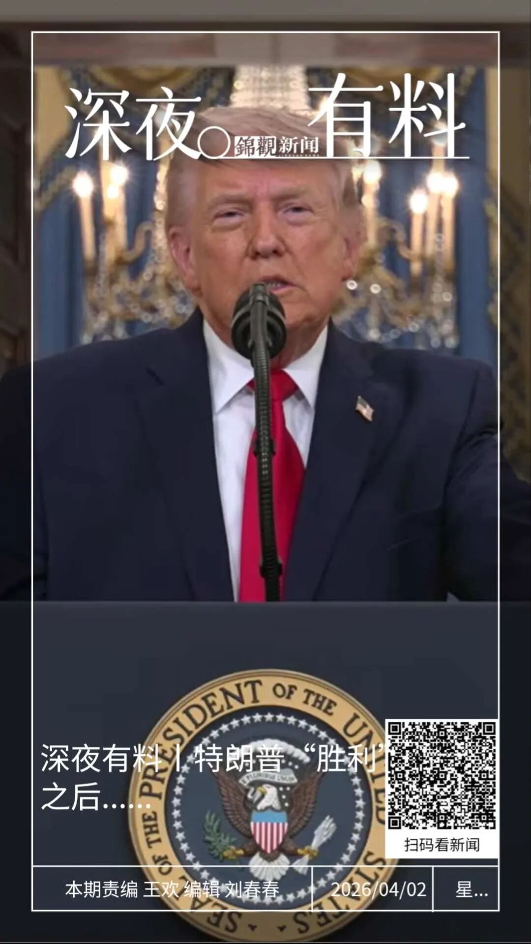 当地时间4月1日,美国总统特朗普在白宫发表简短电视讲话,就伊朗问题作出最新说明。