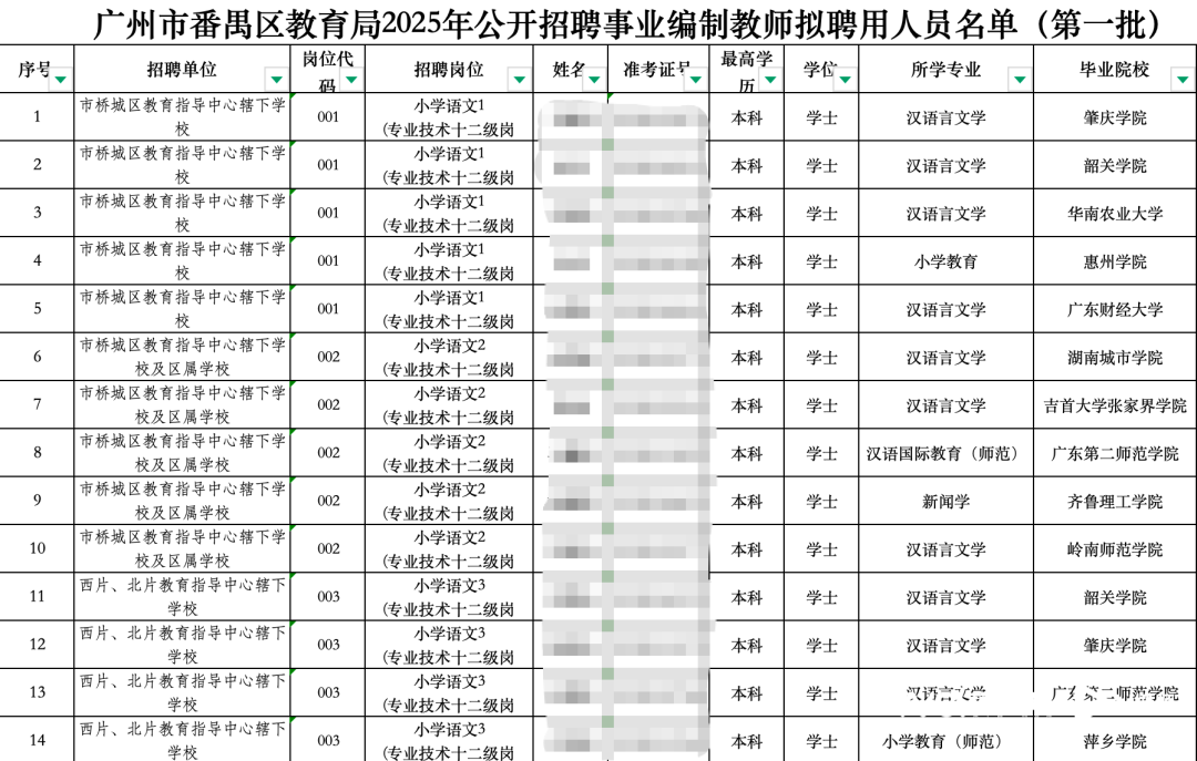 在社交平台上,网友们对于番禺区招聘师资的讨论,主要源于一份番禺区教育局2025年公开招聘事业编制教师拟聘用人员名单。