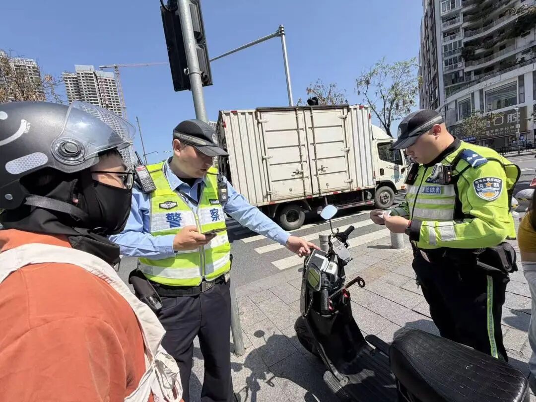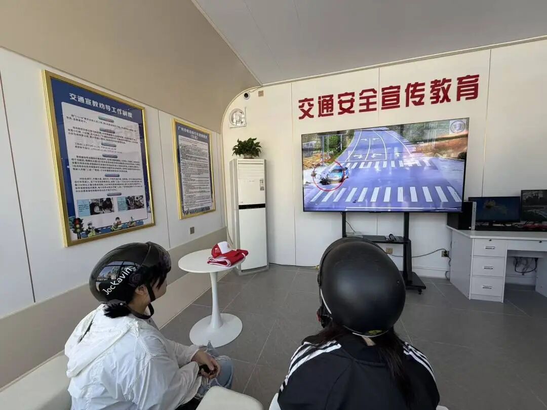 “红棉小屋”外同步设置了大型电子屏,滚动播放电动自行车交通安全宣传视频。在不远处的查车点,多名违法骑行者相继被执勤交警拦下。针对轻微交通违法行为,骑行者被劝导员请去路口沉浸式“换位体验”。针对涉号牌、非法改装等交通违法行为,执勤交警对违法骑行者一一进行处罚。据初步统计,当天上午该查车点累计查扣近30辆电动自行车。