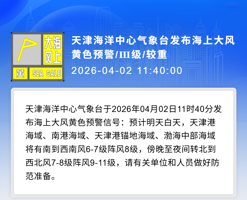 目前我市已发布陆地大风黄色、