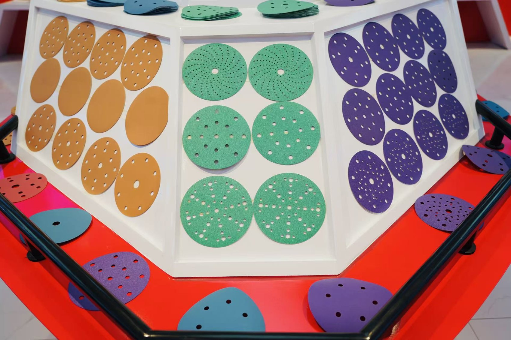 第二张是安全质量。此前国内涂附磨具行业存在大量小作坊,产品安全性堪忧。磨片在高转速下极易破裂飞溅,给一线工人带来严重安全风险。中研磨具在结构和材料上持续升级——前面采用特殊磨料、后面配布基,打磨抛光一次完成,大幅降低安全事故隐患。公司还为全线产品投了产品质量保险,加强风险防控。