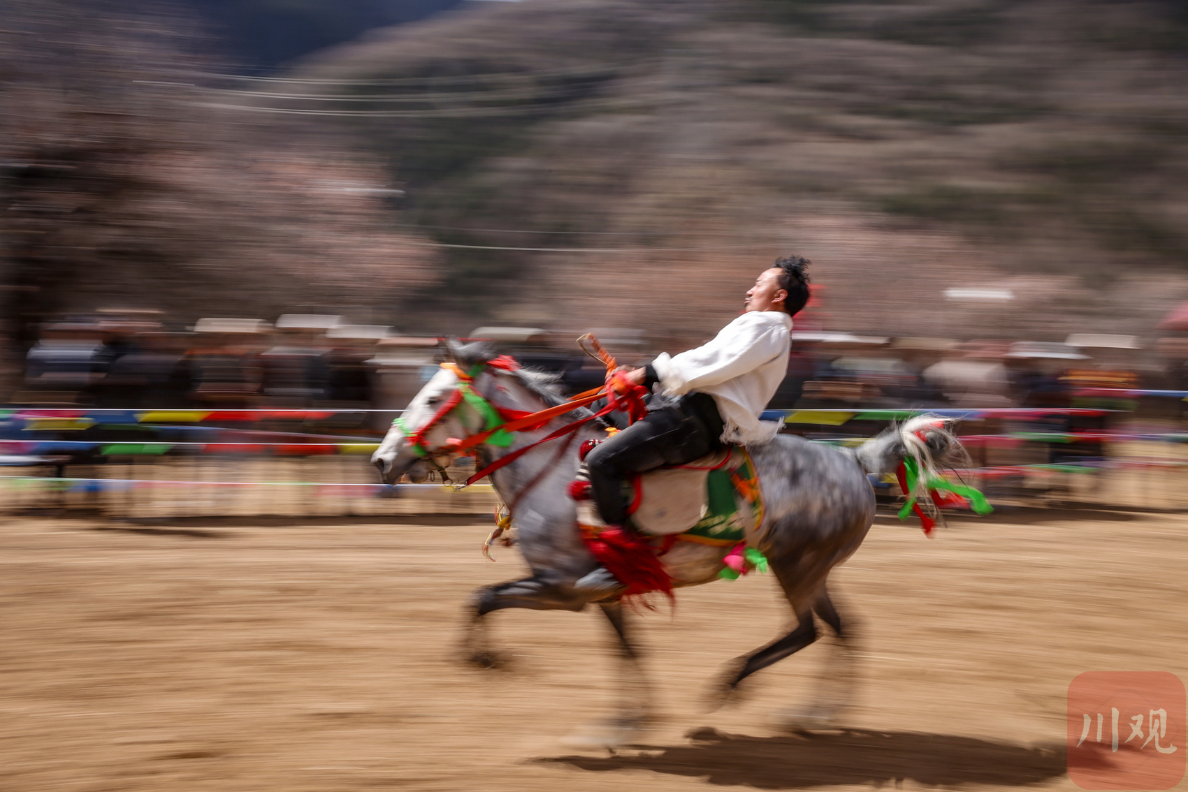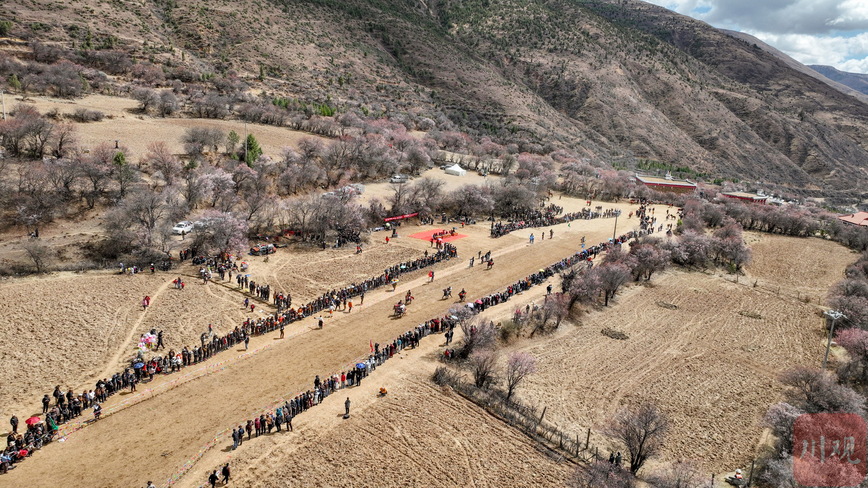 4月3日,道孚县孔色乡麻湾村“杏”马游缰—民俗走马活动如期启幕。