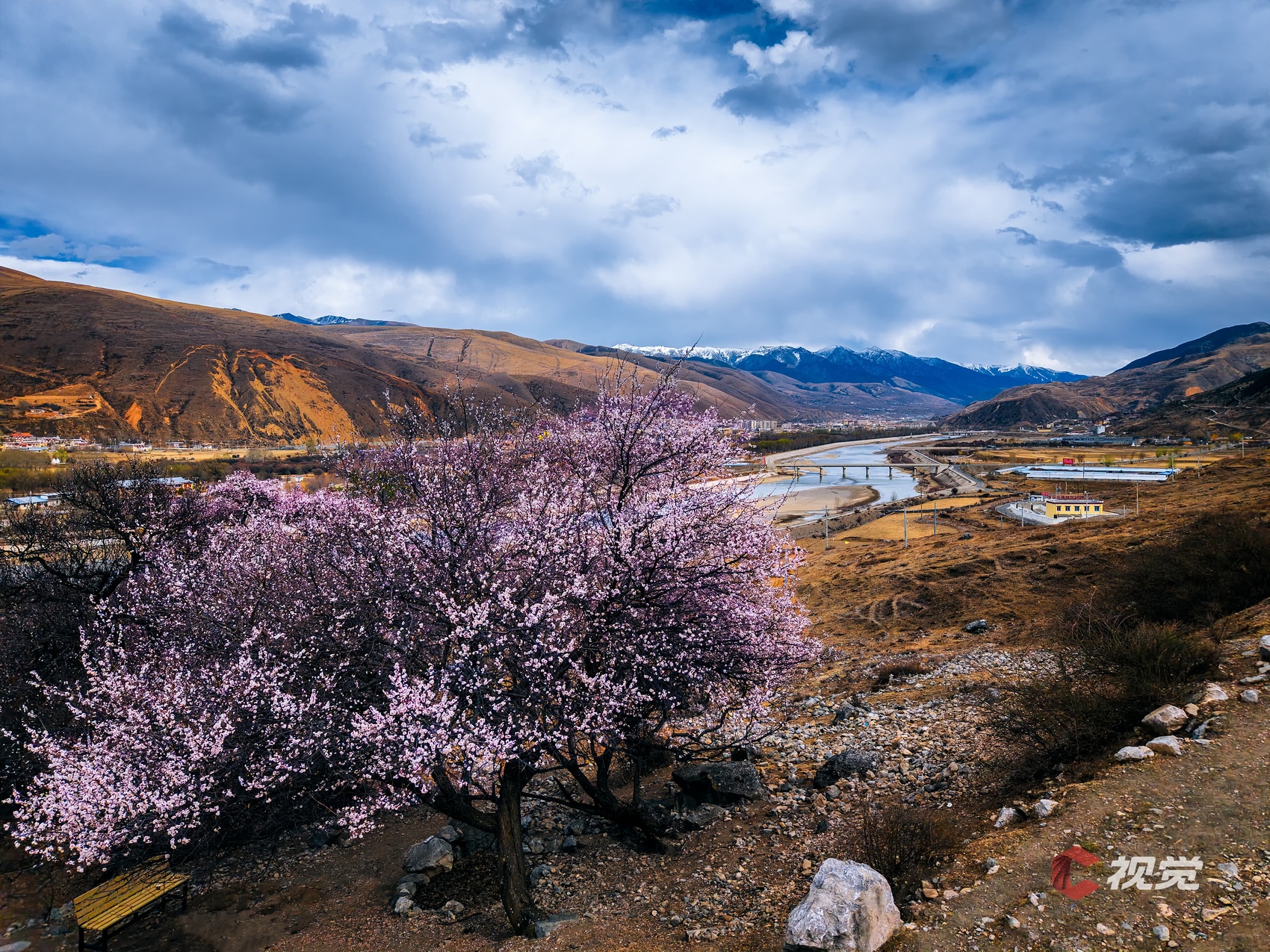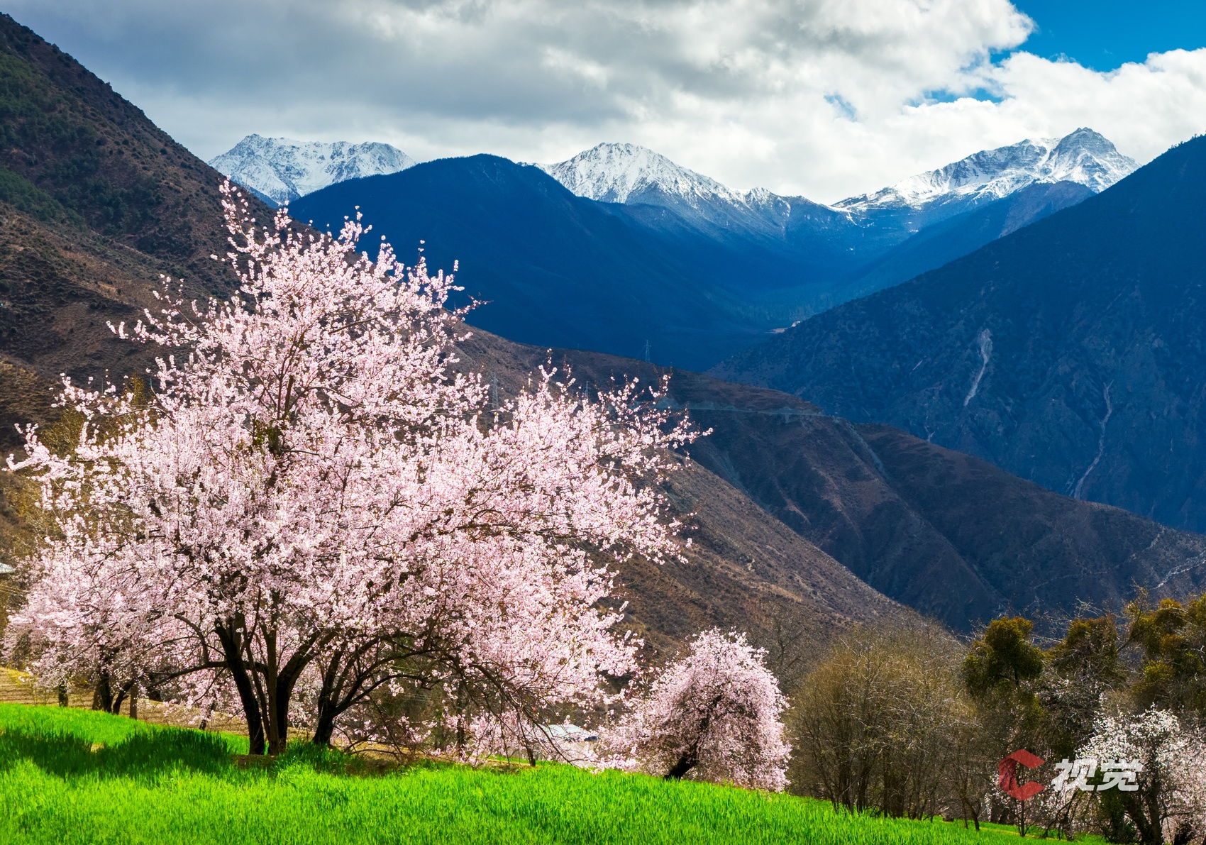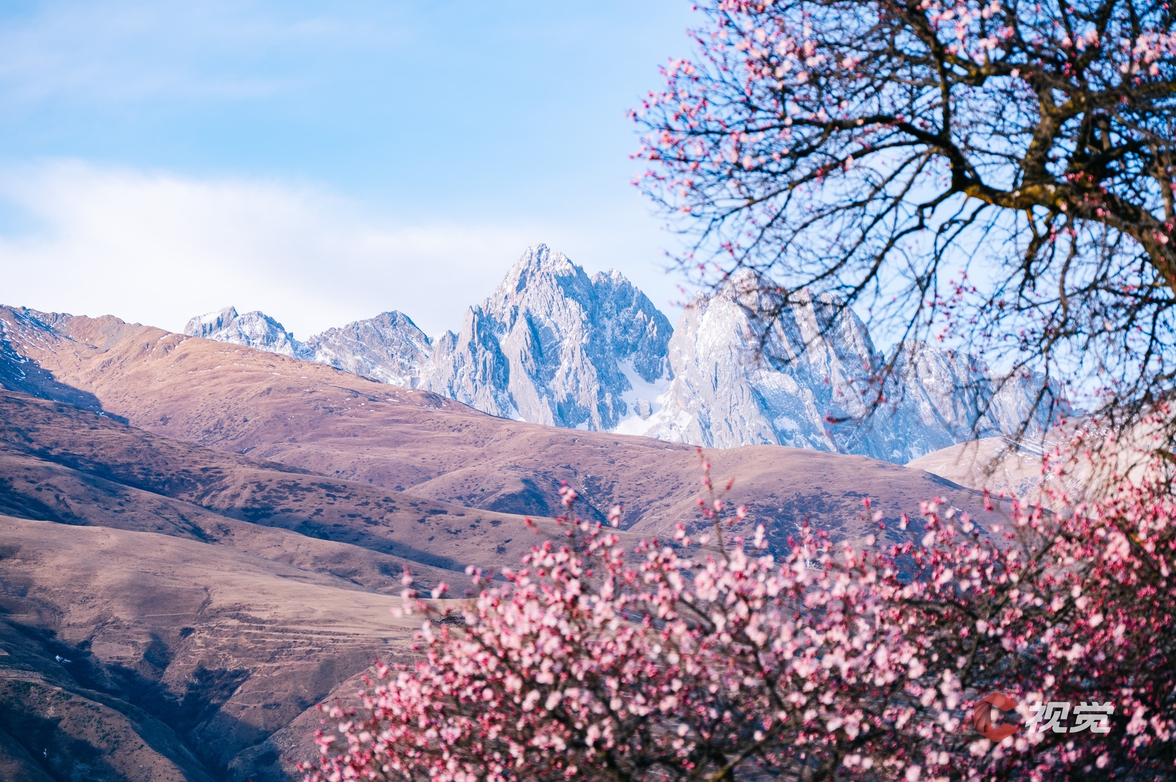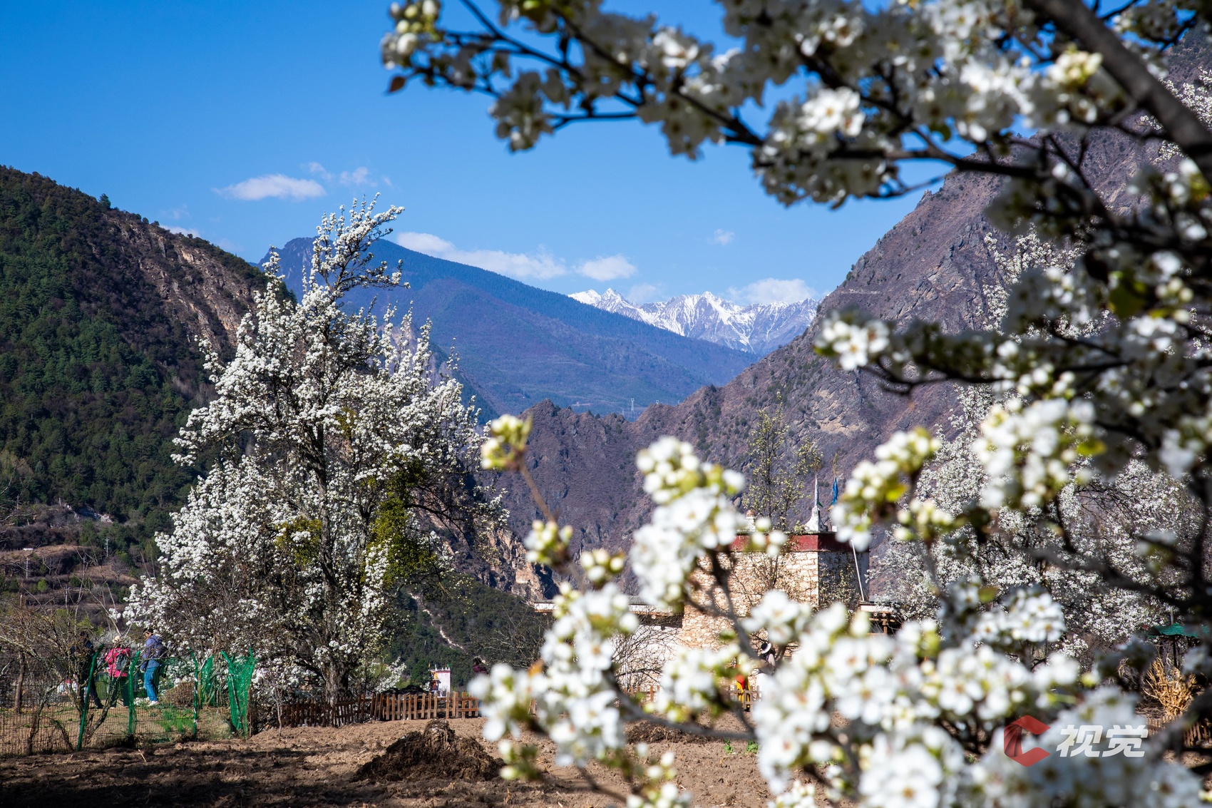 3月19日,甘孜州道孚县春色正好,杏花绽放映照远处的雪山。C视觉签约摄影师 蒋涛