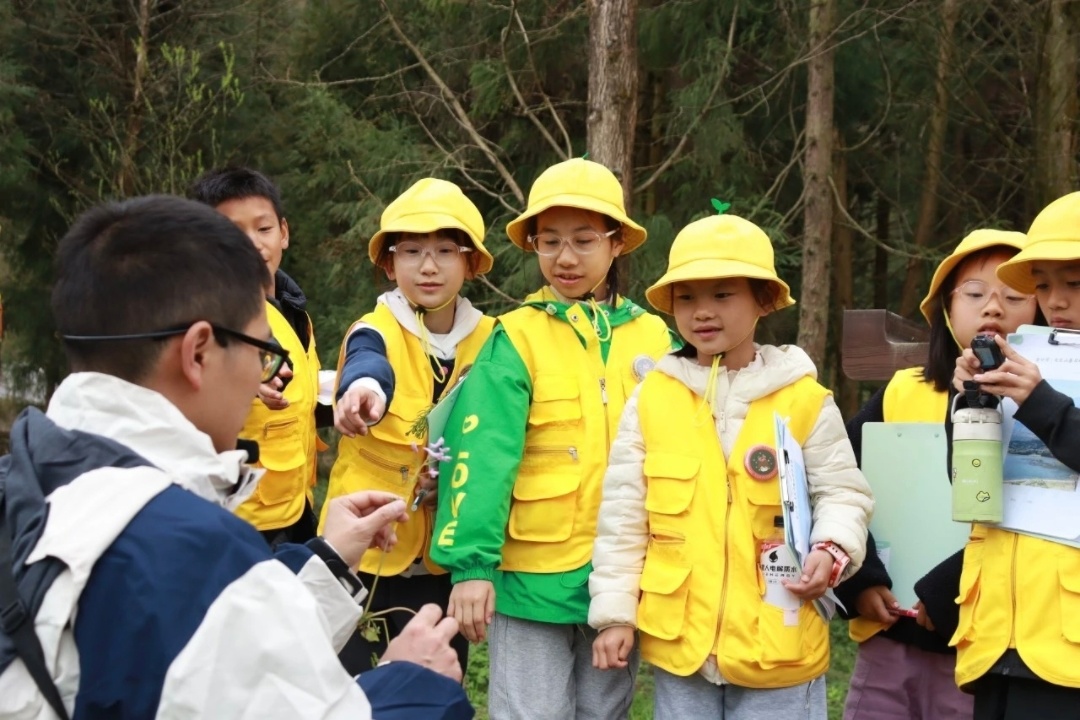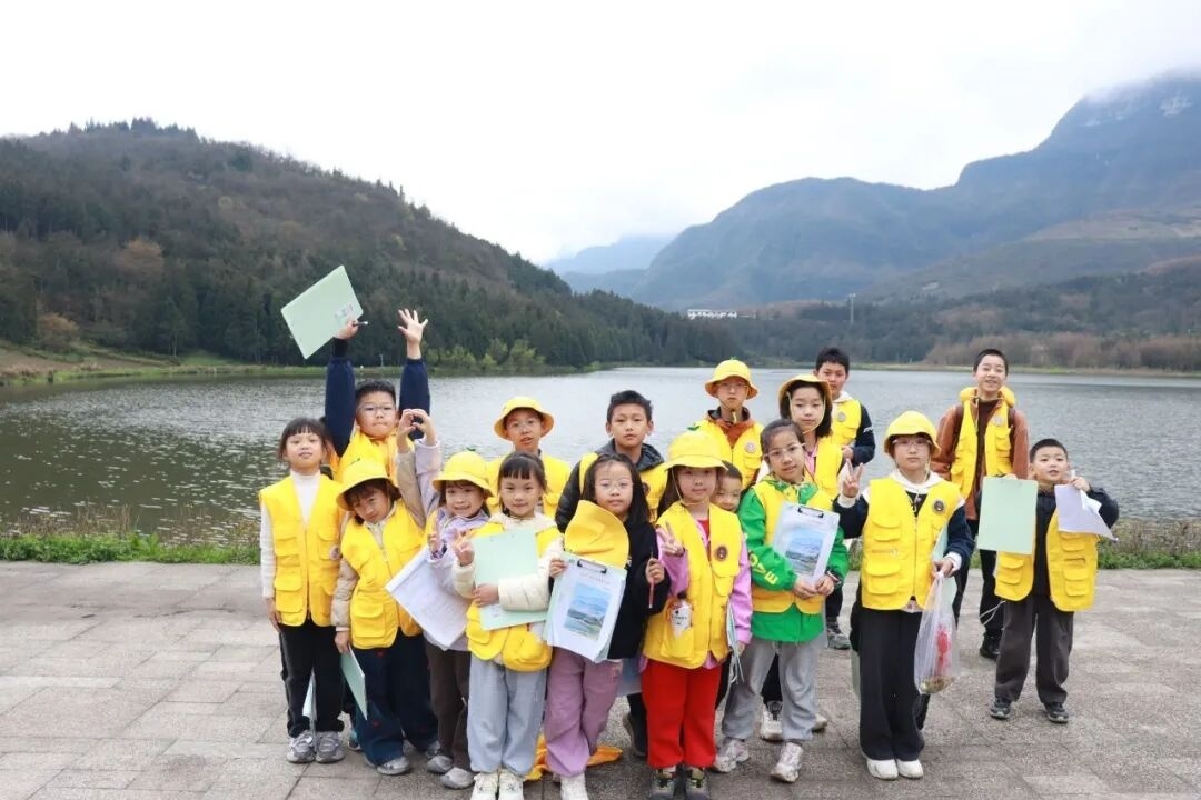 这场以“春水初生”“春山可望”为主题的研学活动,并未停留在走马观花式的游览。从车程课堂、湿地探究到户外徒步、微景观创作,孩子们沉浸式感受大瓦山的独特魅力。
