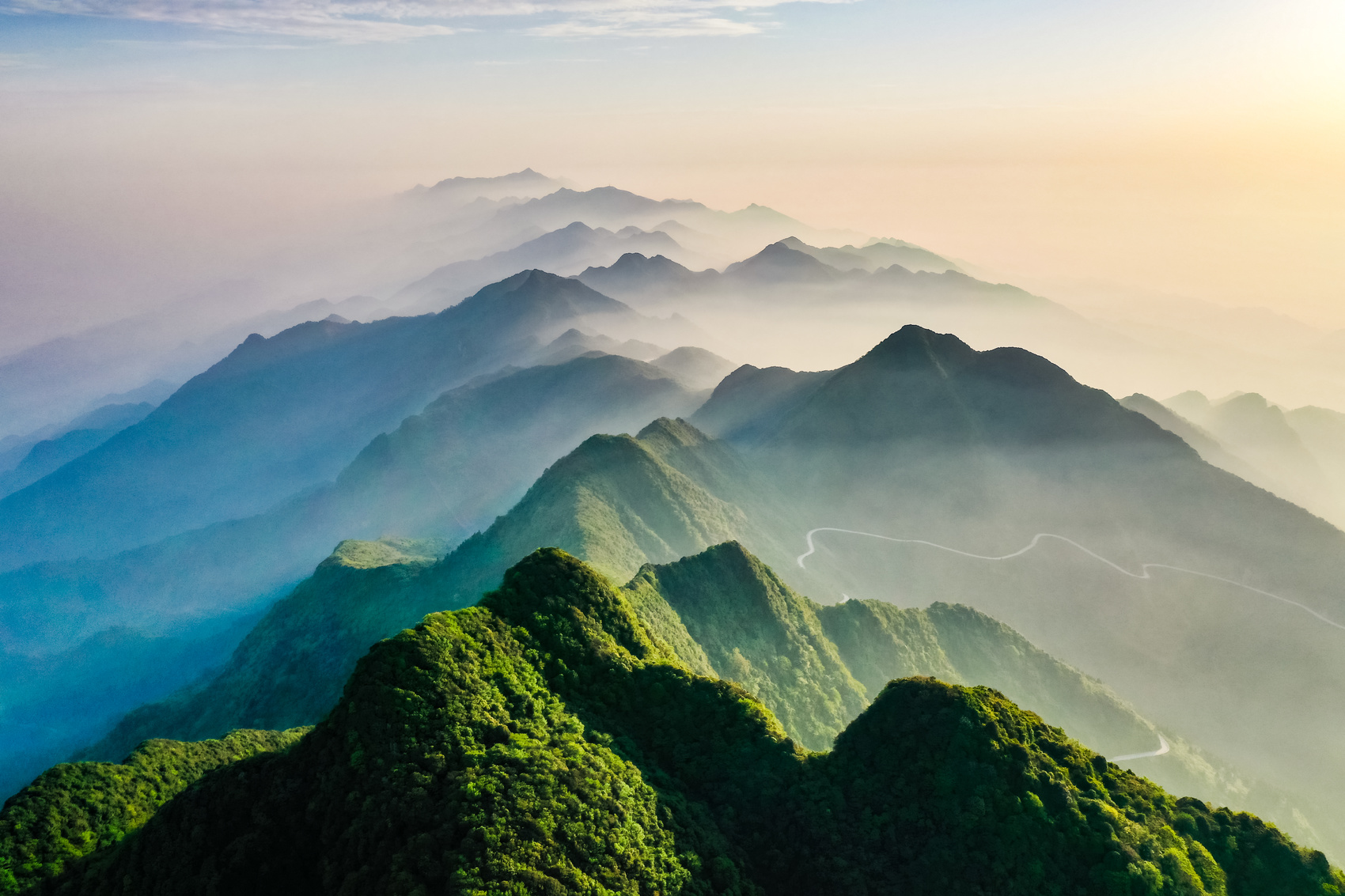 晨曦中的华蓥山峰峦叠嶂,尤为壮美。(张国盛 摄)
