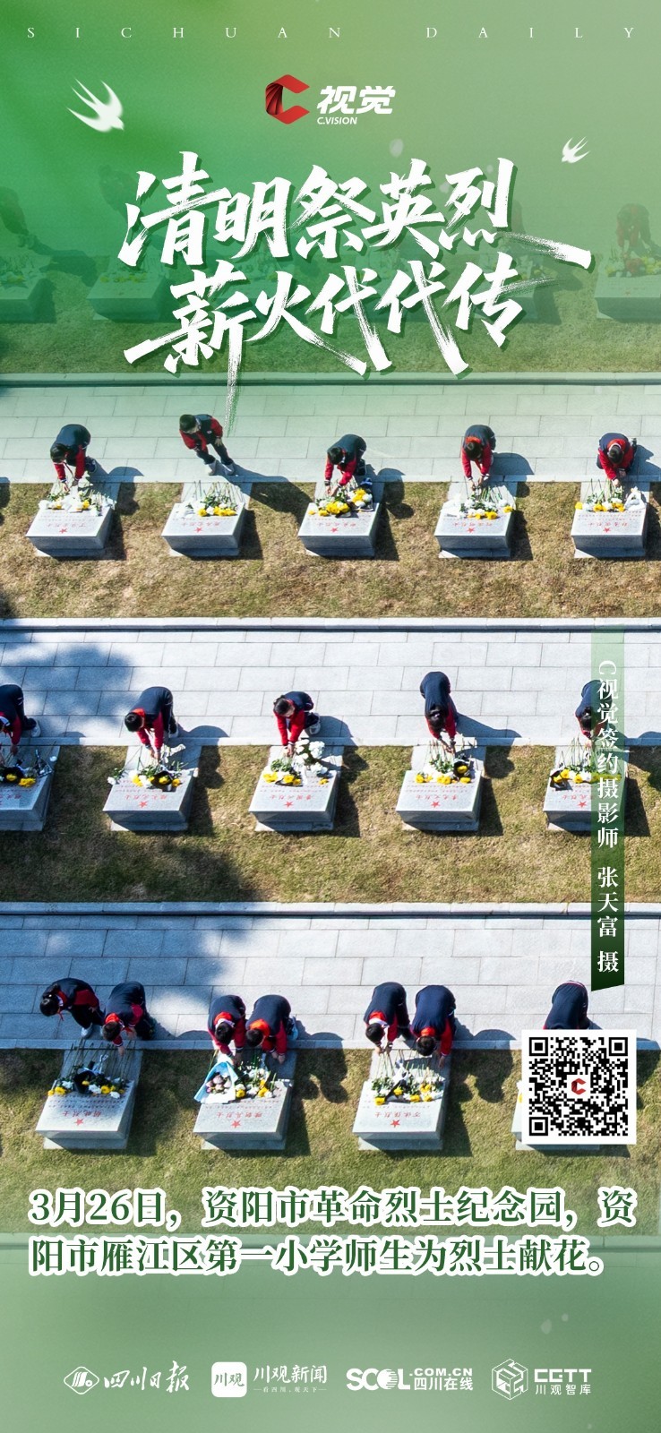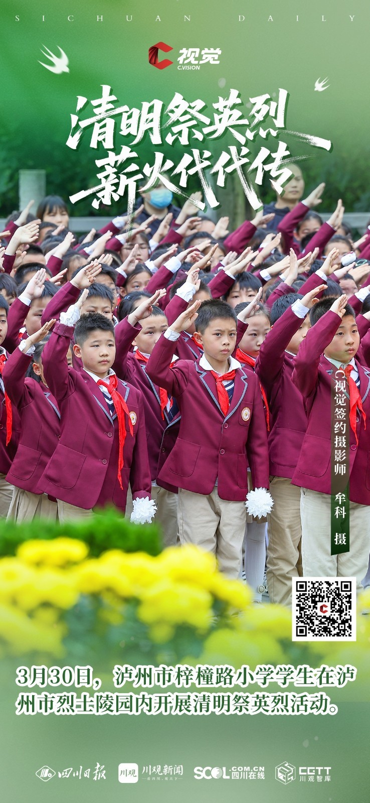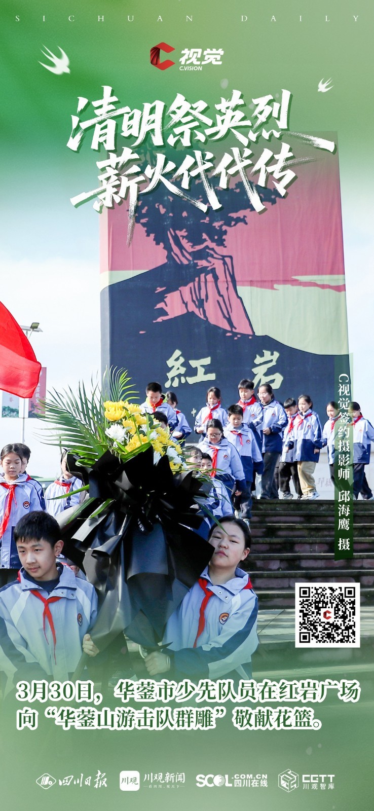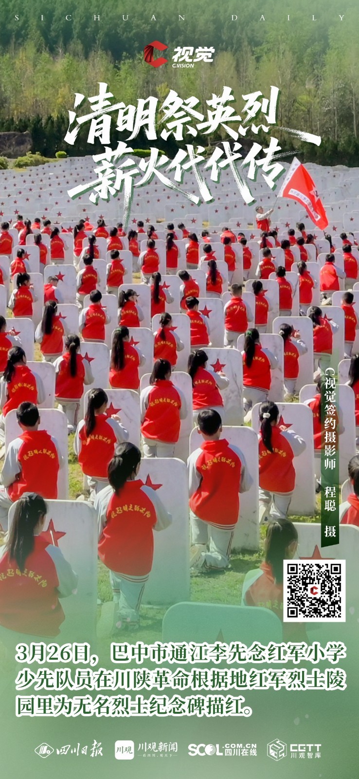 C视觉特别推出《清明祭英烈 薪火代代传》海报特辑,英烈精神如不灭星火,照耀前行之路,更需吾辈铭记于心、传承于行,让红色薪火代代相传,让忠魂永铸山河。