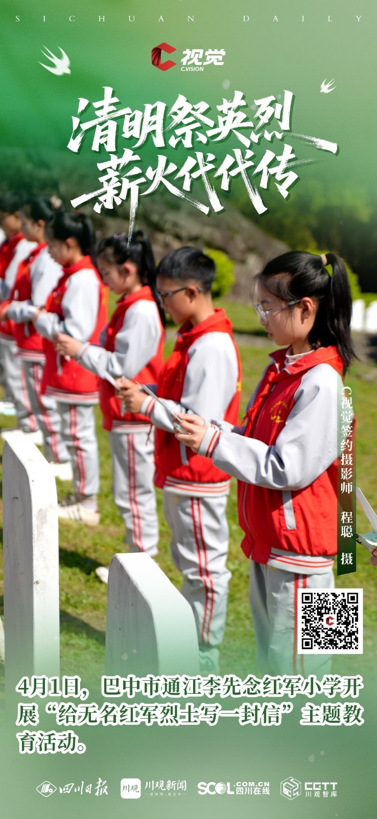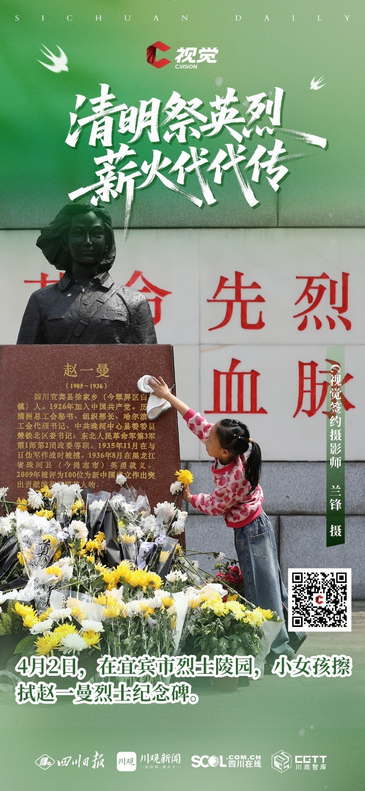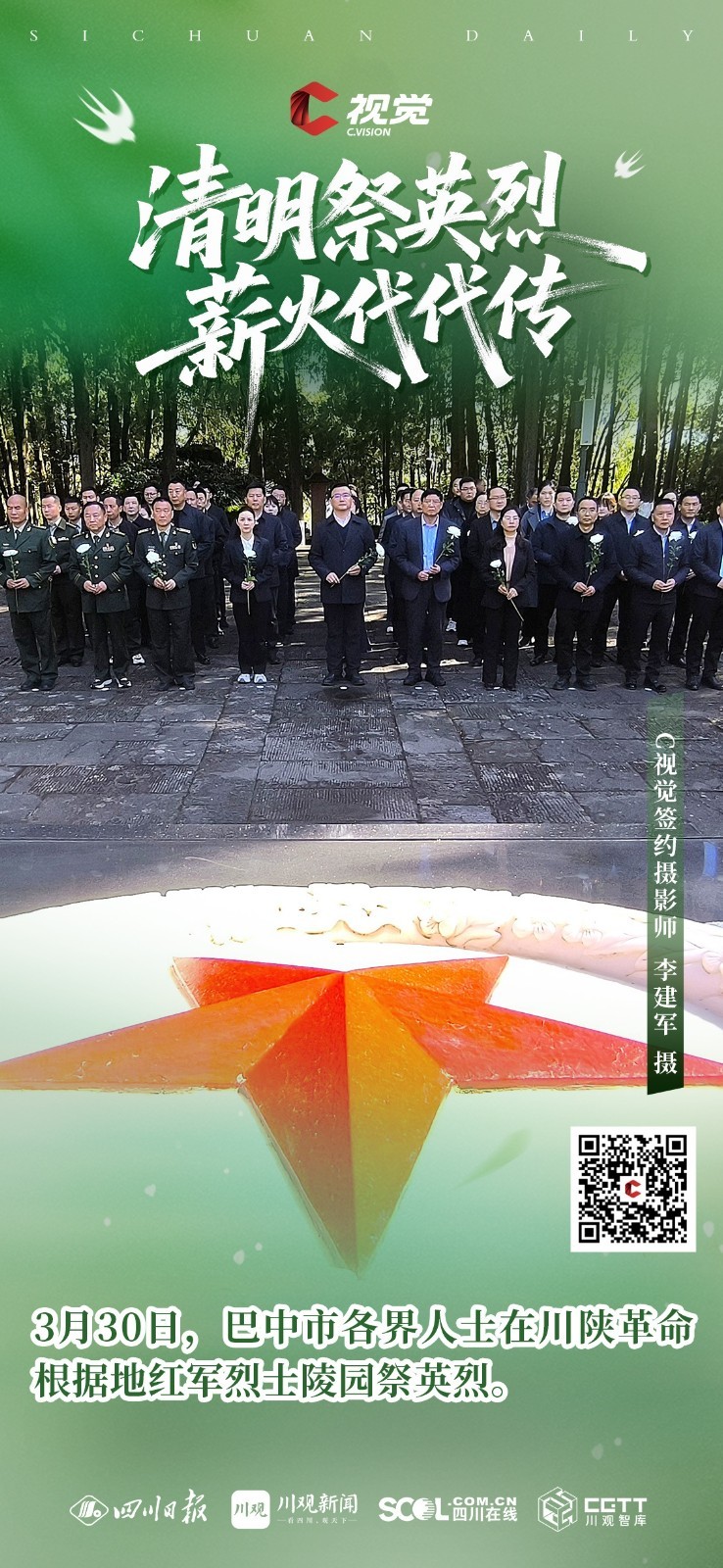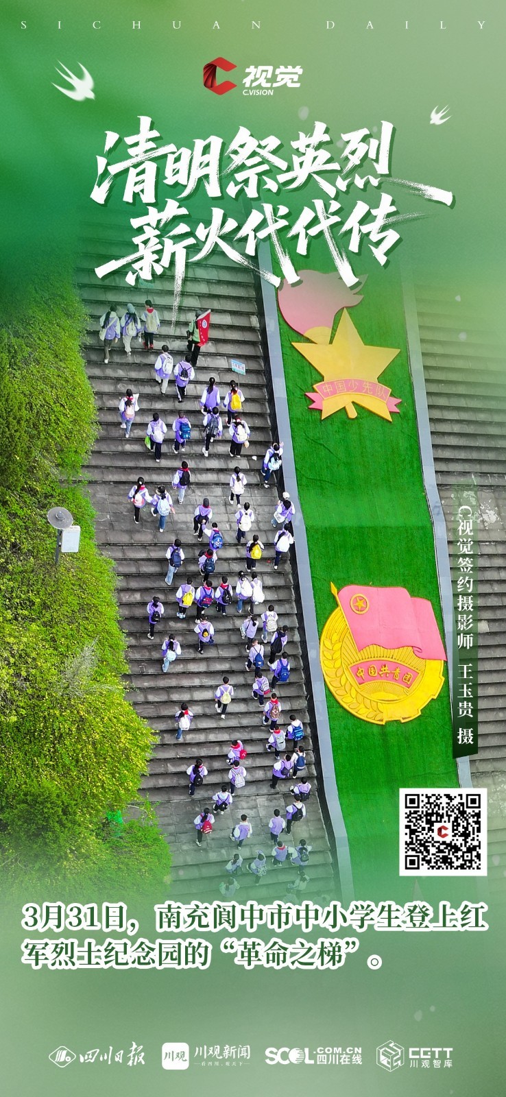 C视觉特别推出《清明祭英烈 薪火代代传》海报特辑,英烈精神如不灭星火,照耀前行之路,更需吾辈铭记于心、传承于行,让红色薪火代代相传,让忠魂永铸山河。