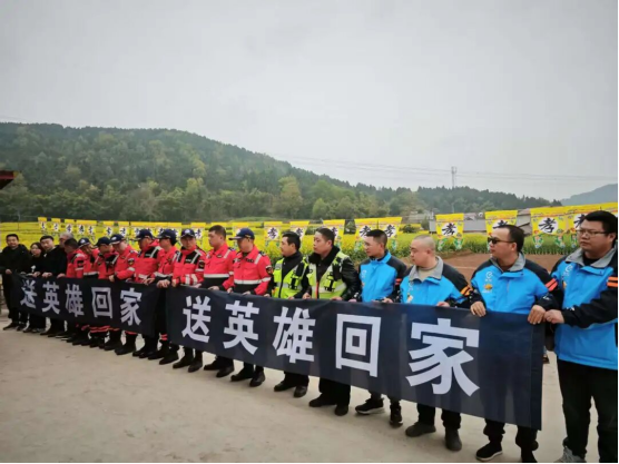 事发当天,绵阳市游仙区涪江街道立即成立专班,全程陪同家属,做好吃住行保障和情绪安抚。游仙区委区政府、区委政法委、区民政局等部门相继上门慰问。4月1日,一场庄重的遗体告别仪式在绵阳殡仪馆举行,数十名身着蓝色工服的外卖骑手整齐列队,送这位“侠义蓝骑士”最后一程。仪式后,贴着“送英雄回家”标语的专用车辆,在同事们的护送下,缓缓驶向中江老家——那里,是他出发的地方,也是他最终安息的地方。