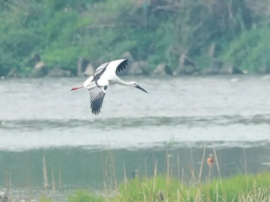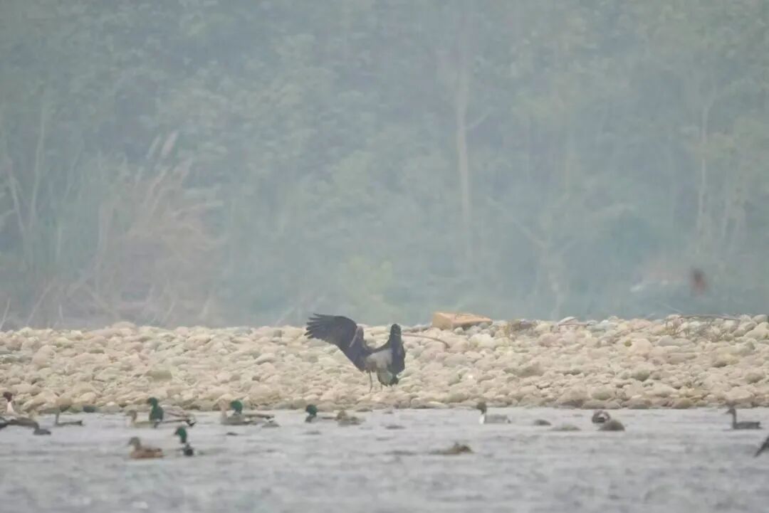 2025年12月白鹤滩保育区实拍到黑鹳(国家一级)。