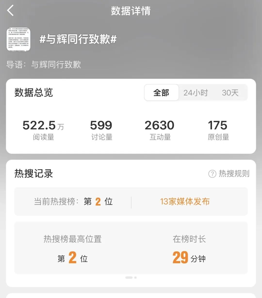 与辉同行还提到,“后续我们将依据最终核查结论,及时同步全部处理进展;同时一如既往地做好对相关产品质量的持续关注,并严格复盘选品审核,强化风控把关。给大家带来担忧与不便,我们深表歉意。如有相关订单问题,可随时私信客服,我们将加急为您处理。”