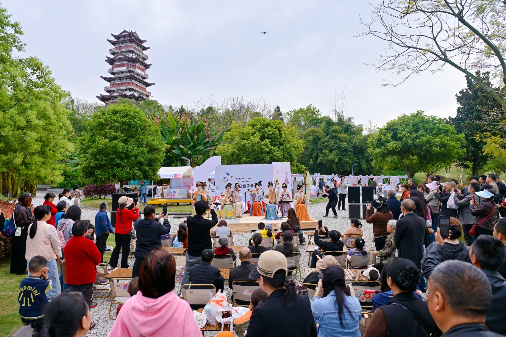 十二花神巡游队伍穿梭园区,状元簪花送福传递春日美好期许……4月3日,由简阳市文化广电体育和旅游局主办的2026简阳赏花活动联动村糖市集启幕,以鳌山公园、东麓花溪为双核心会场,串联古风巡游、特色市集、亲子体验等多元场景,激活文商旅融合发展新动能。