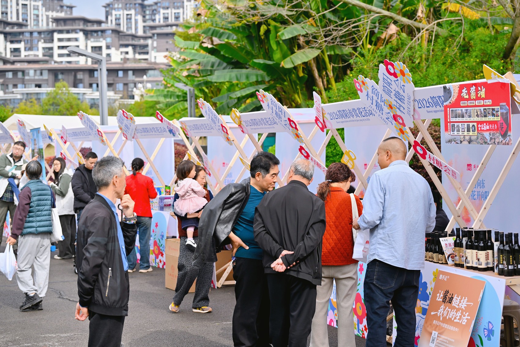 亲子自然拓印活动处,孩子们兴致勃勃地动手创作,在实践中感受自然之美;民乐团现场奏响春日乐章,悠扬的旋律萦绕园区。简阳市中医医院现场开展义诊服务,为市民游客提供健康咨询。