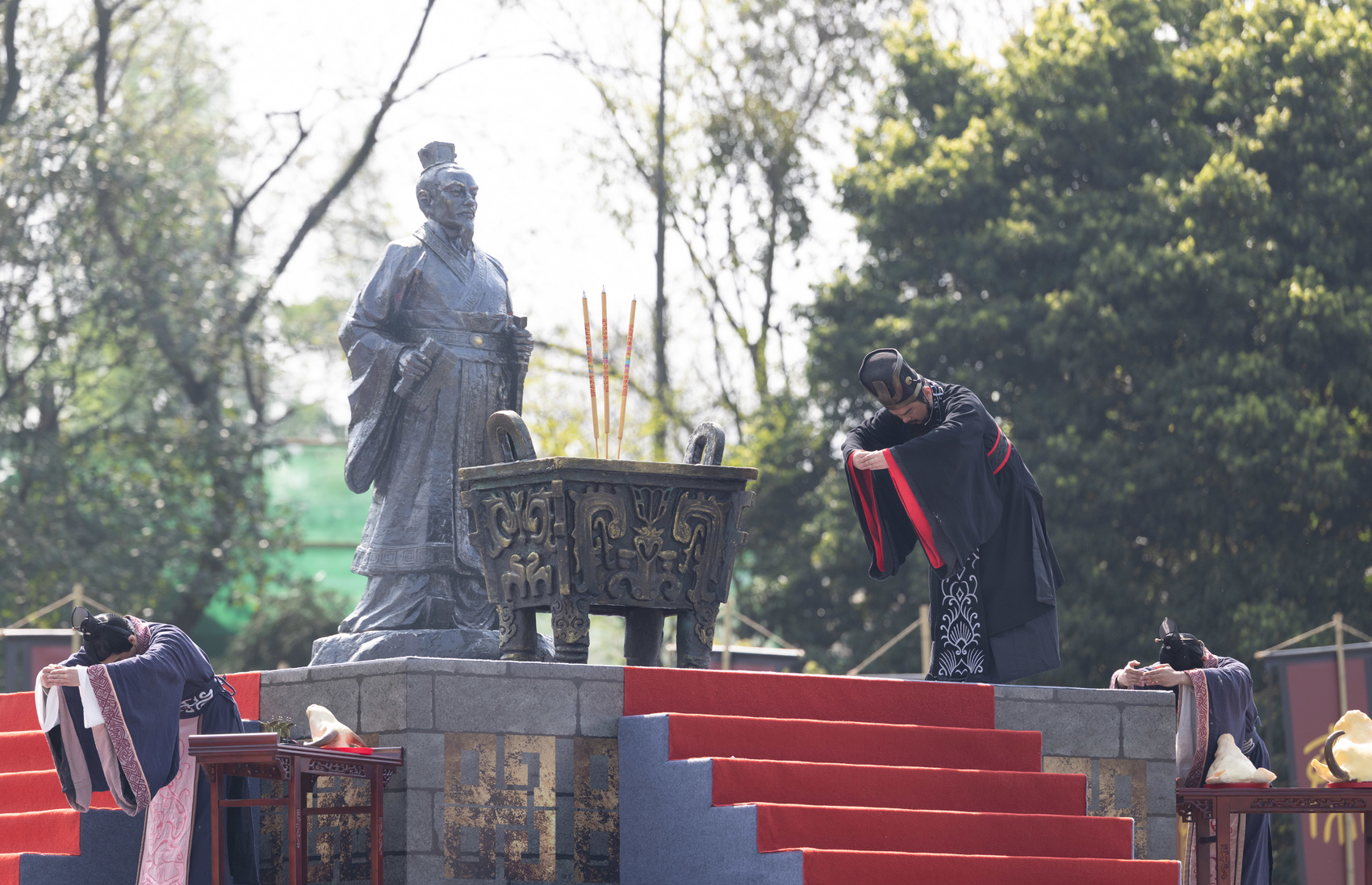 4月3日,2026都江堰放水大典在都江堰景区举行,主祭人循古祭祀。新华社记者 江宏景 摄