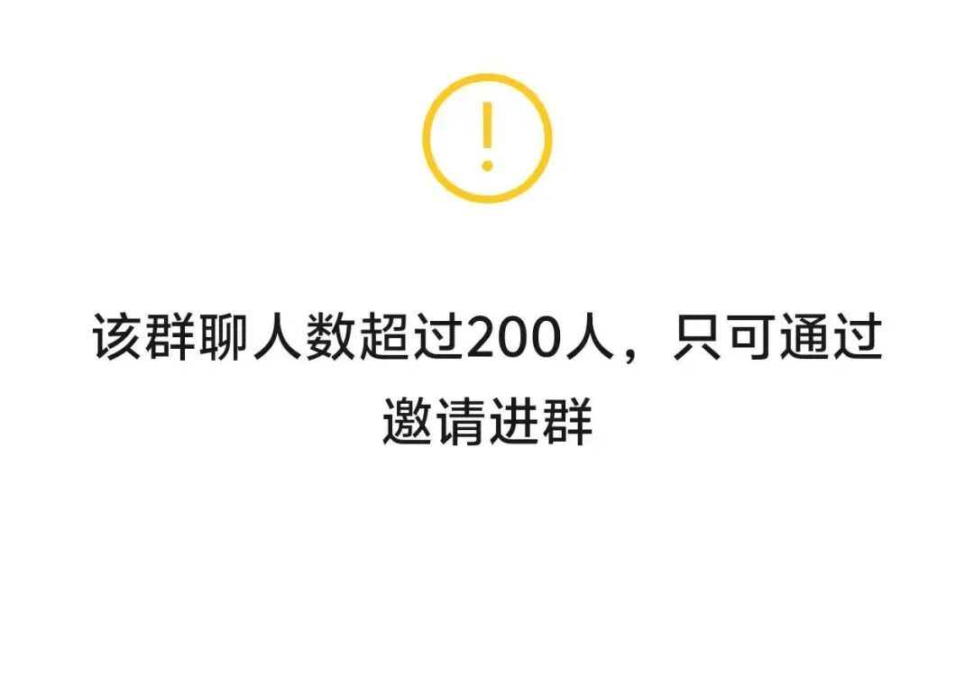 “叮!群聊‘吴越’们集合人数超过200人,只可通过邀请进群——”